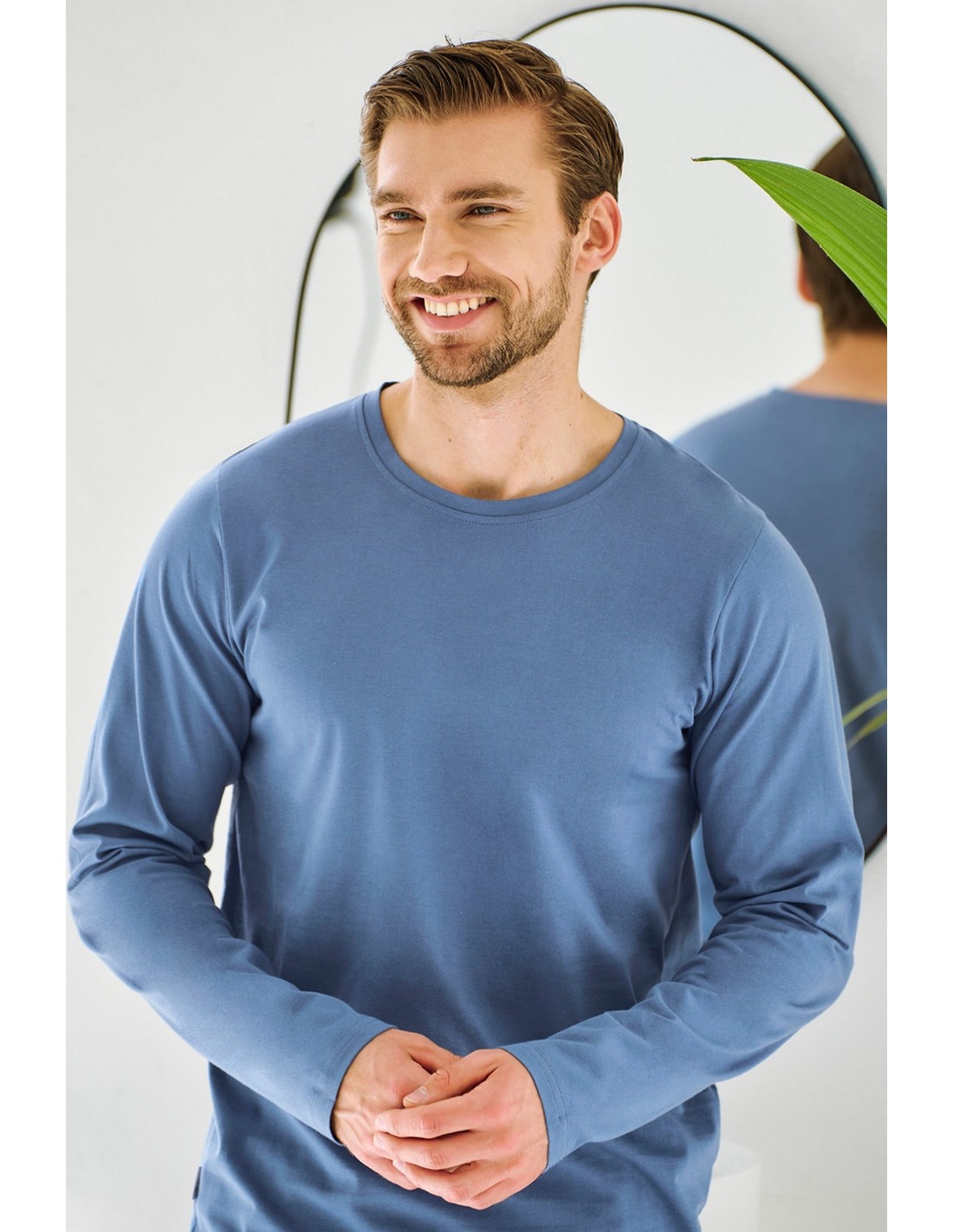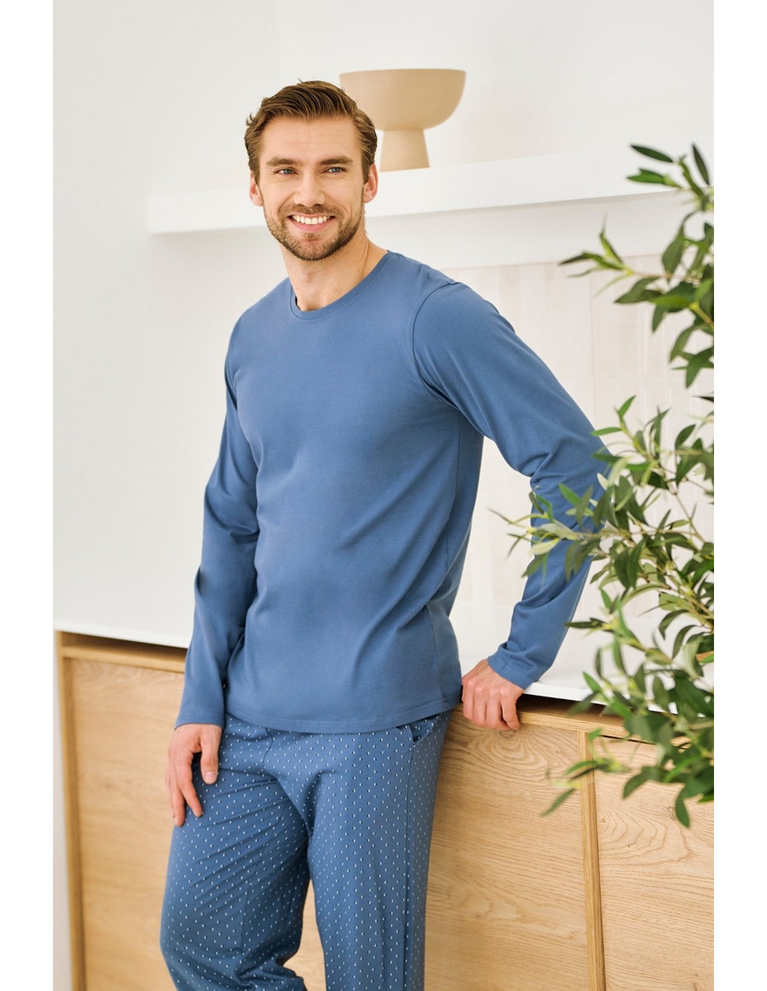 Piżama męska 3474 Lorenzo to klasyczna i komfortowa propozycja wykonana w całości z naturalnej, oddychającej bawełny. Gładka, jednolita koszulka jest z długim rękawem i okrągłym dekoltem zapewnia prosty, elegancki wygląd oraz wygodę noszenia.