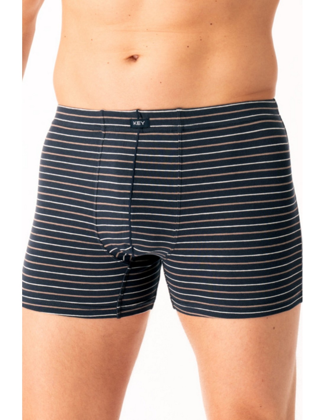 Bokserki męskie Key MXH 311 to idealne połączenie wygody, klasy i stylu. Wykonane z wysokogatunkowej bawełny z dodatkiem elastanu, idealnie dopasowują się do sylwetki i zapewniają pełną swobodę ruchów. Materiał jest miękki, przewiewny i przyjazny dla skóry, co gwarantuje komfort przez cały dzień. Model wyróżnia się modnym wzorem w cienkie paski oraz elastycznym pasem z logo Key, który stabilnie utrzymuje bieliznę na miejscu. Płaskie szwy minimalizują ryzyko otarć, czyniąc je idealnym wyborem zarówno na co dzień, jak i do aktywności fizycznych.