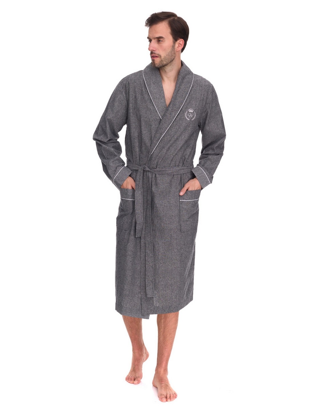 Szlafrok 2532 L&L przeznaczony dla mężczyzn, zapewnia komfort i swobodę ruchów. Wykonany z wysokiej jakości bawełny, zapewnia doskonałą oddychalność oraz komfort noszenia przez całą noc. Dzięki prostemu designowi sprawdzi się w różnych sytuacjach, od relaksu w domu po chwile po prysznicu. Materiał jest miękki w dotyku, co dodatkowo podnosi komfort użytkowania. Szlafrok ten jest idealny dla mężczyzn ceniących wygodę i styl w codziennym życiu.