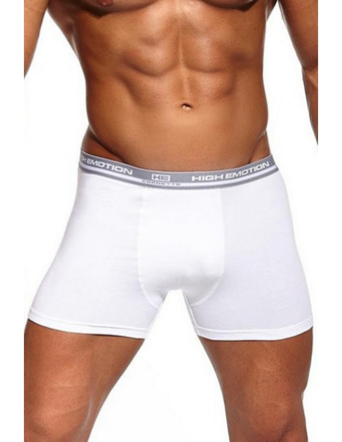 Bokserki High Emotion to bardzo dobry pomysł na prezent dla ukochanej osoby, podkreślają charakter i styl, stworzone z wysoko gatunkowej dzianiny bawełnianej z dodatkiem elastanu. Cechy produktu: wykończone delikatną gumą, przestrzenny klin, płaskie łączenie szwów, bez uciskowe wykończenie nogawek, fason delikatnie opinający ciało.