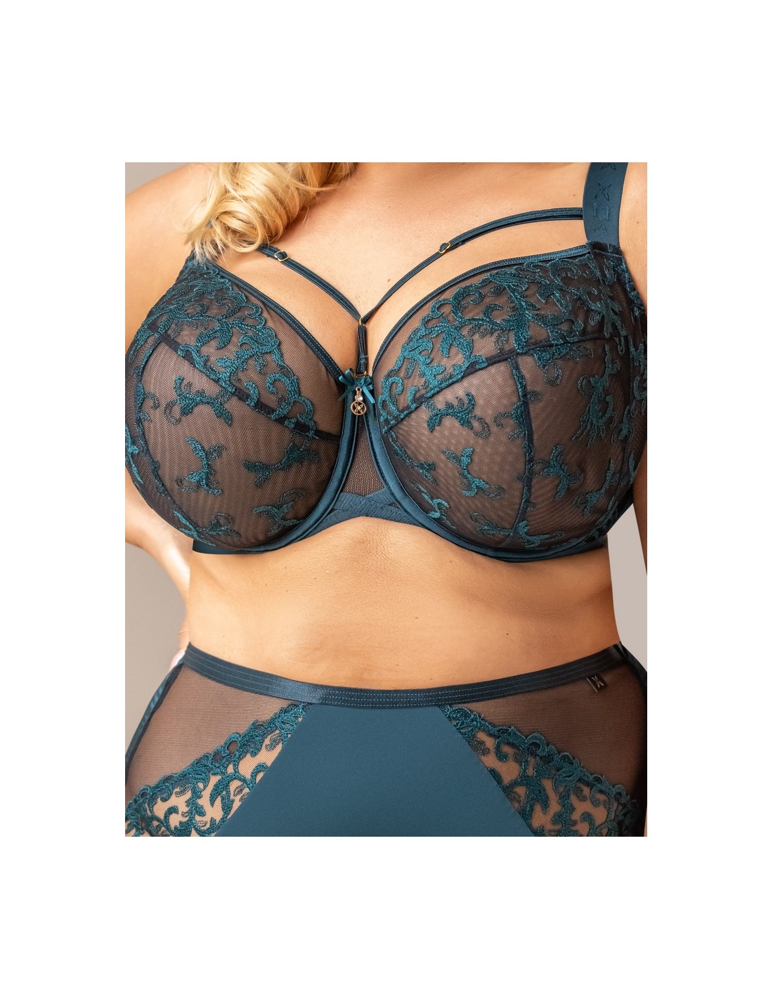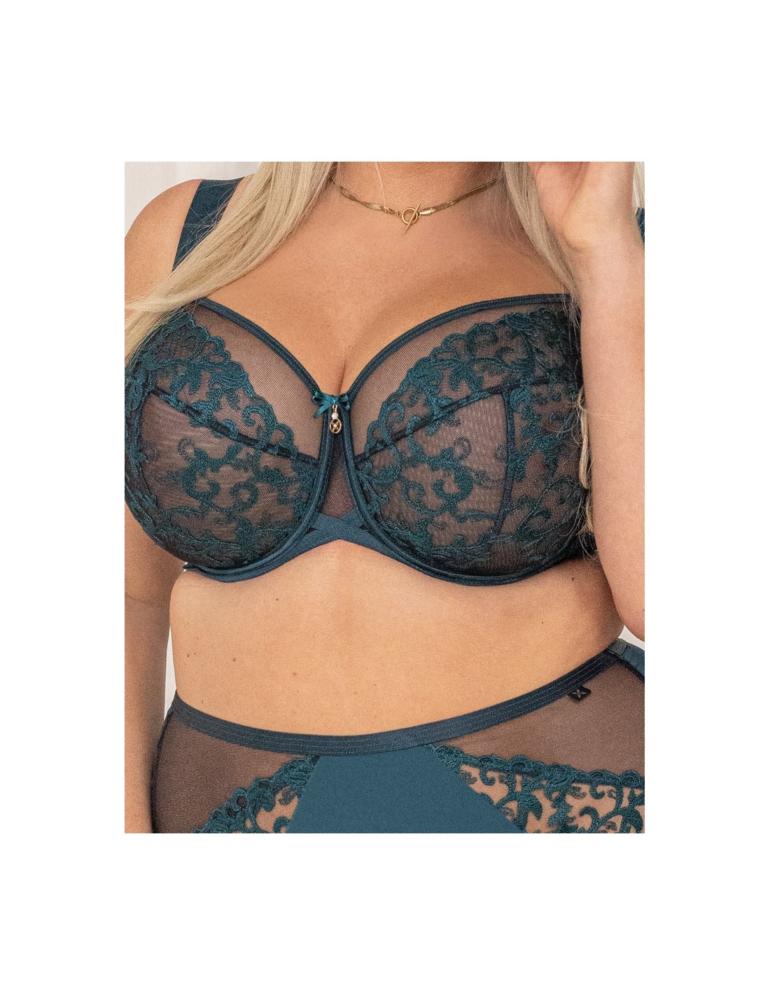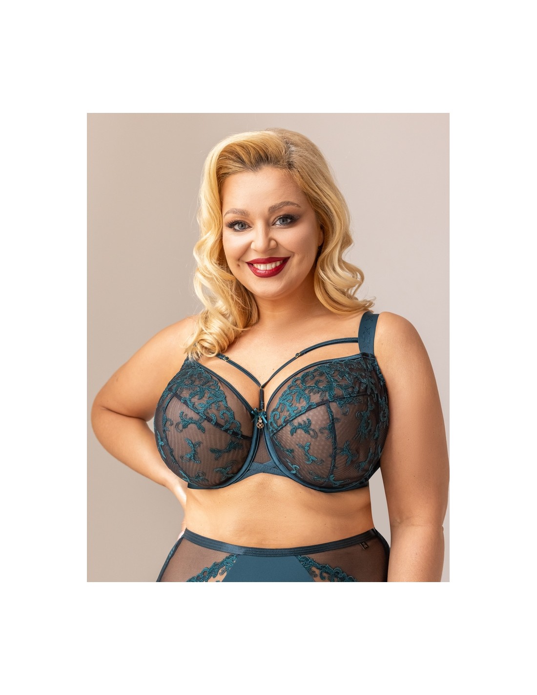 Biustonosz miękki full cup Krisline Palazzo, zielony z paskami z przodu