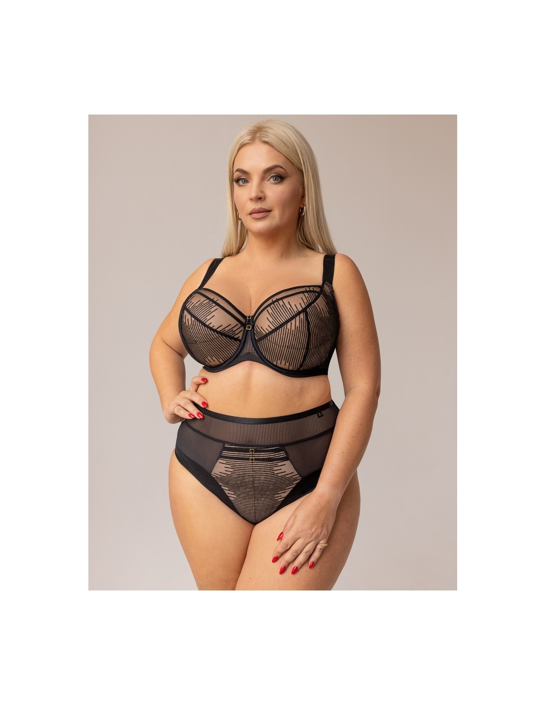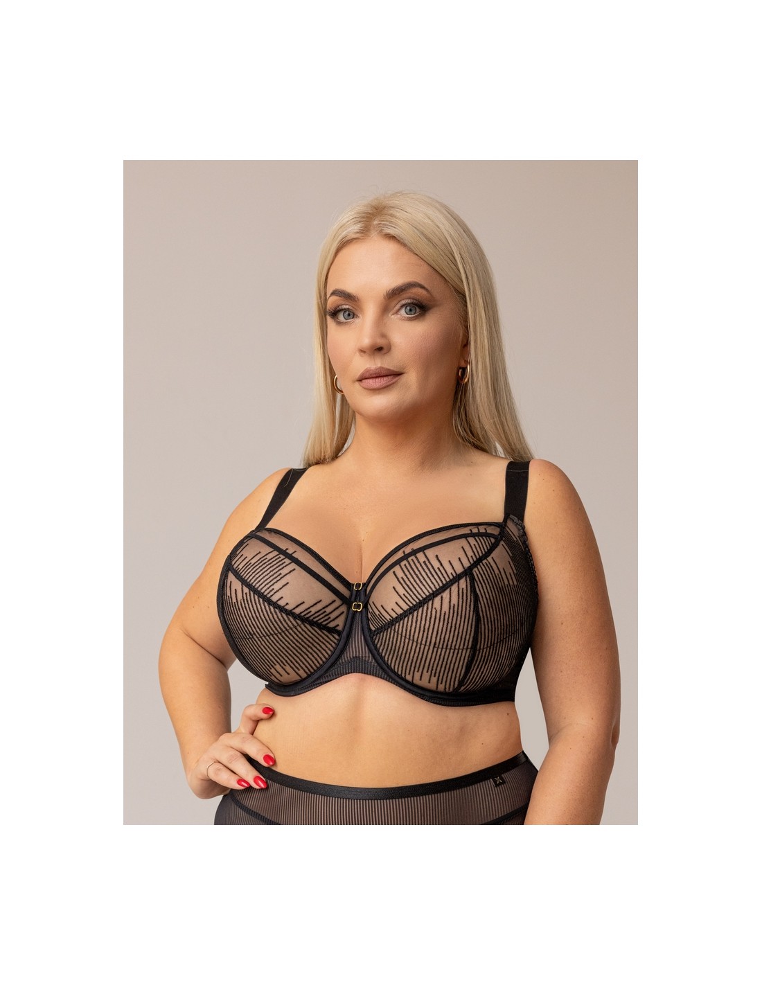 Jego zmysłowy krój pięknie modeluje sylwetkę, podkreślając atuty. Ten czarny biustonosz z fiszbinami Krisline Choice został stworzony z myślą o kobietach z większym biustem, które cenią sobie wygodę i styl. Jego konstrukcja składa się z trzech części, co sprawia, że pięknie zbiera piersi z boku i nadaje im okrągły kształt. Wykonany z delikatnego, cielistego tiulu oraz ozdobnej koronki, zapewnia elegancję. Regulowane ramiączka i fiszbiny gwarantują stabilne podtrzymanie przez wiele godzin. Biustonosz doskonale sprawdzi się na co dzień oraz przy specjalnych okazjach.