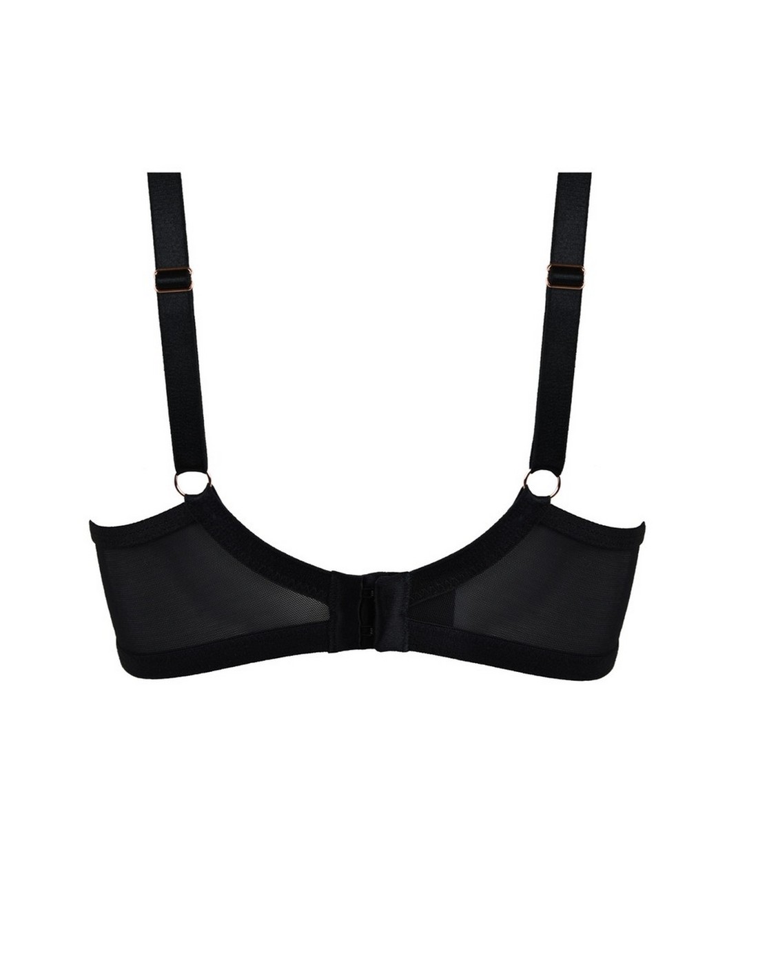 Zachwyć się elegancją i komfortem z miękkim biustonoszem z fiszbinami, zaprojektowanym z myślą o kobietach z większym biustem. Miseczki stworzone z beżowej siateczki, ozdobione intensywną neonową koronką, subtelnie eksponują dekolt dzięki transparentnemu tiulowi wykończonemu czarną lamówką. Ta konstrukcja łączy lekkość z wyjątkową stabilnością -- stanik wyśmienicie unosi, zbiera i podtrzymuje biust, a szeroka fiszbina precyzyjnie otula całą pierś. Szerokie ramiączka dostosowane do rozmiaru misek gwarantują wygodę i minimalizują nacisk na ramiona, nawet w trakcie długiego noszenia. Tył wykonany z oddychającej siateczki, bez bocznych fiszbin, zapewnia wygodę i dobranie.