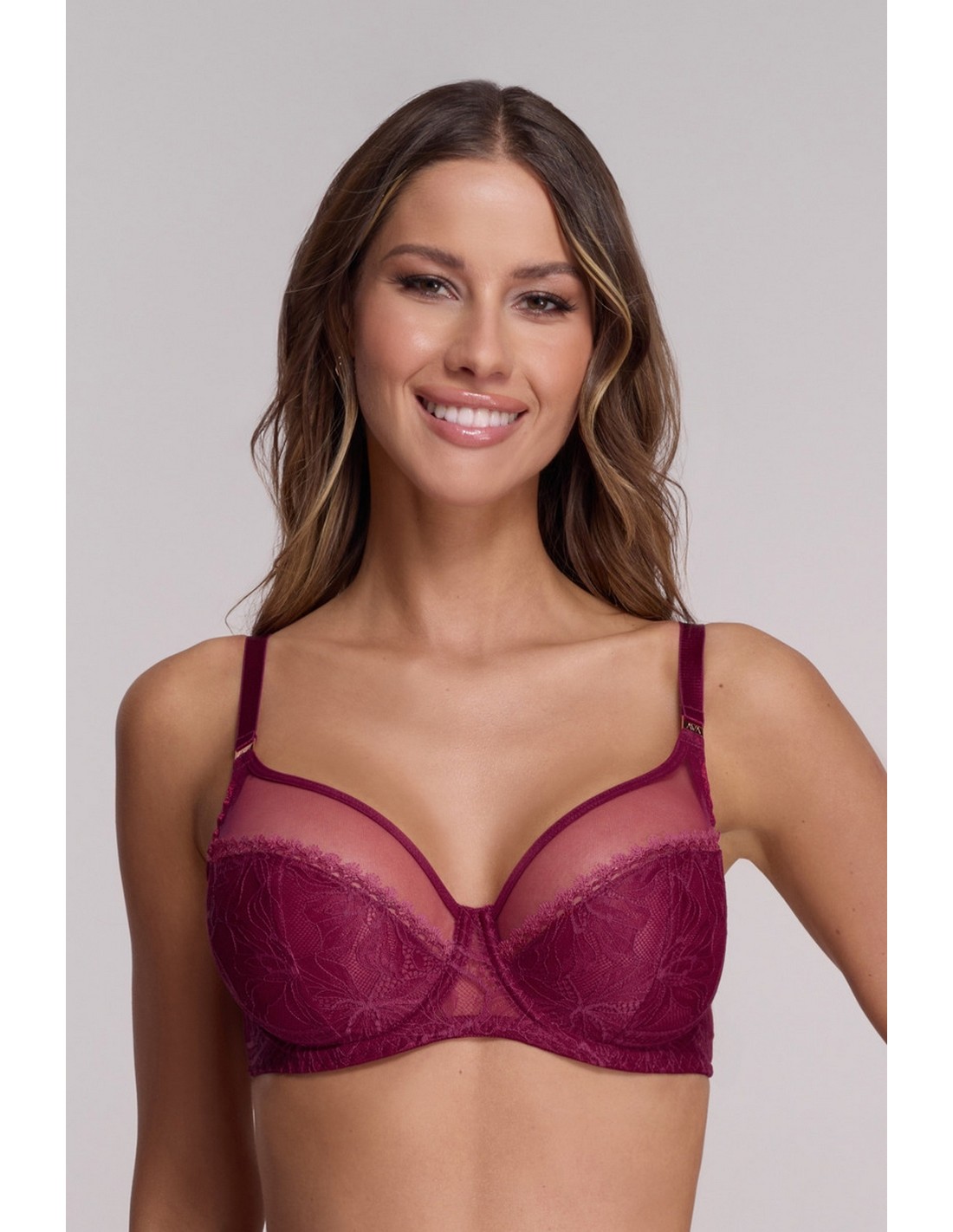 Biustonosz AV 1396 Soft Chianti Maxi to kwintesencja kobiecości w nowoczesnym, zmysłowym wydaniu. Wykonany z transparentnego tiulu i dekoracyjnego haftu o roślinnym motywie, zachwyca kolorem wytrawnego wina, który dodaje pewności siebie i elegancji.