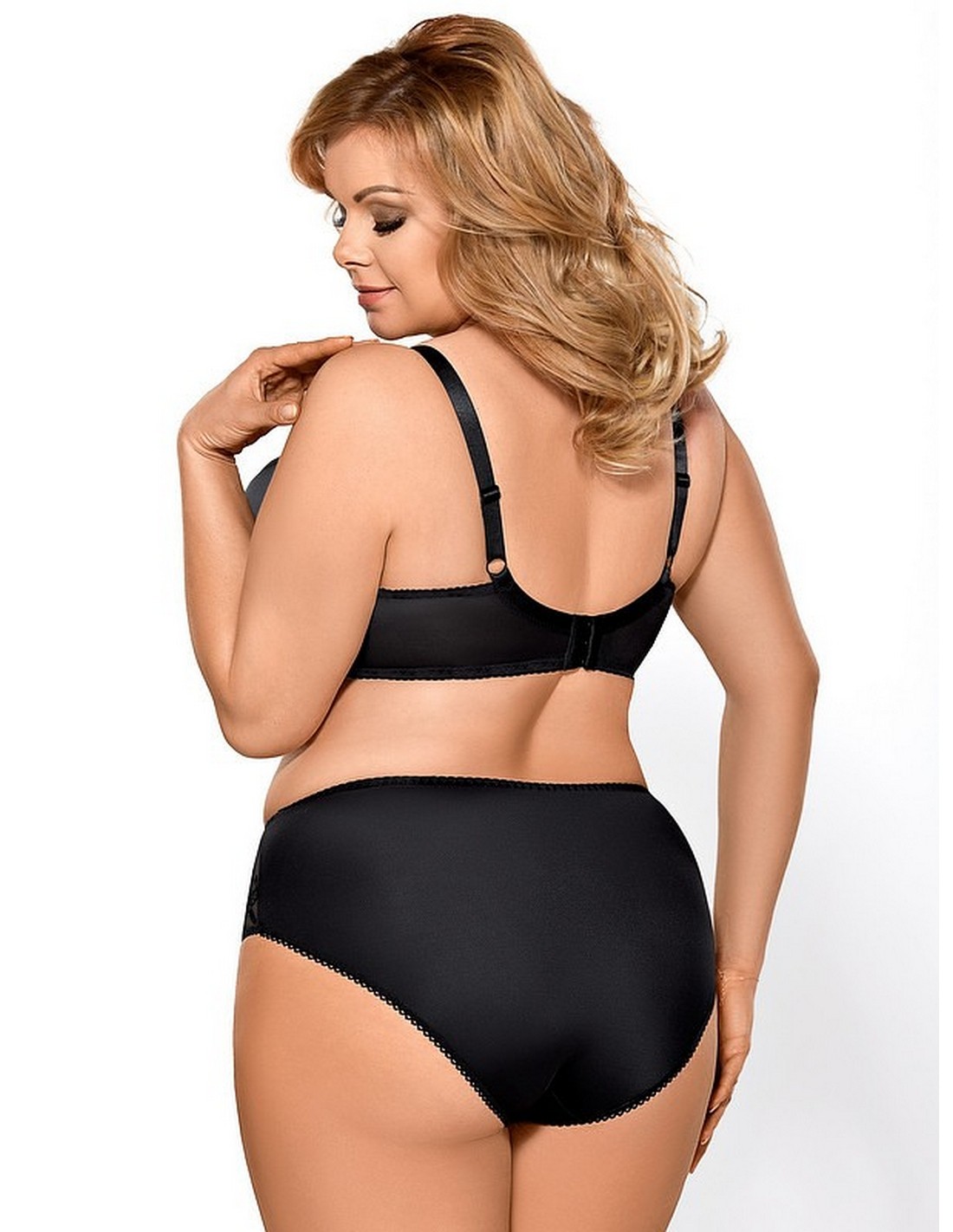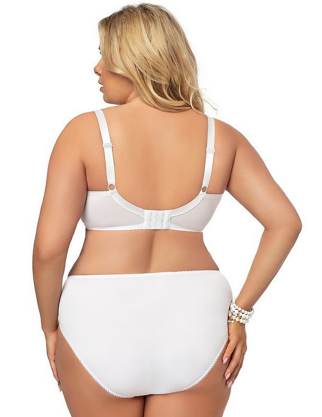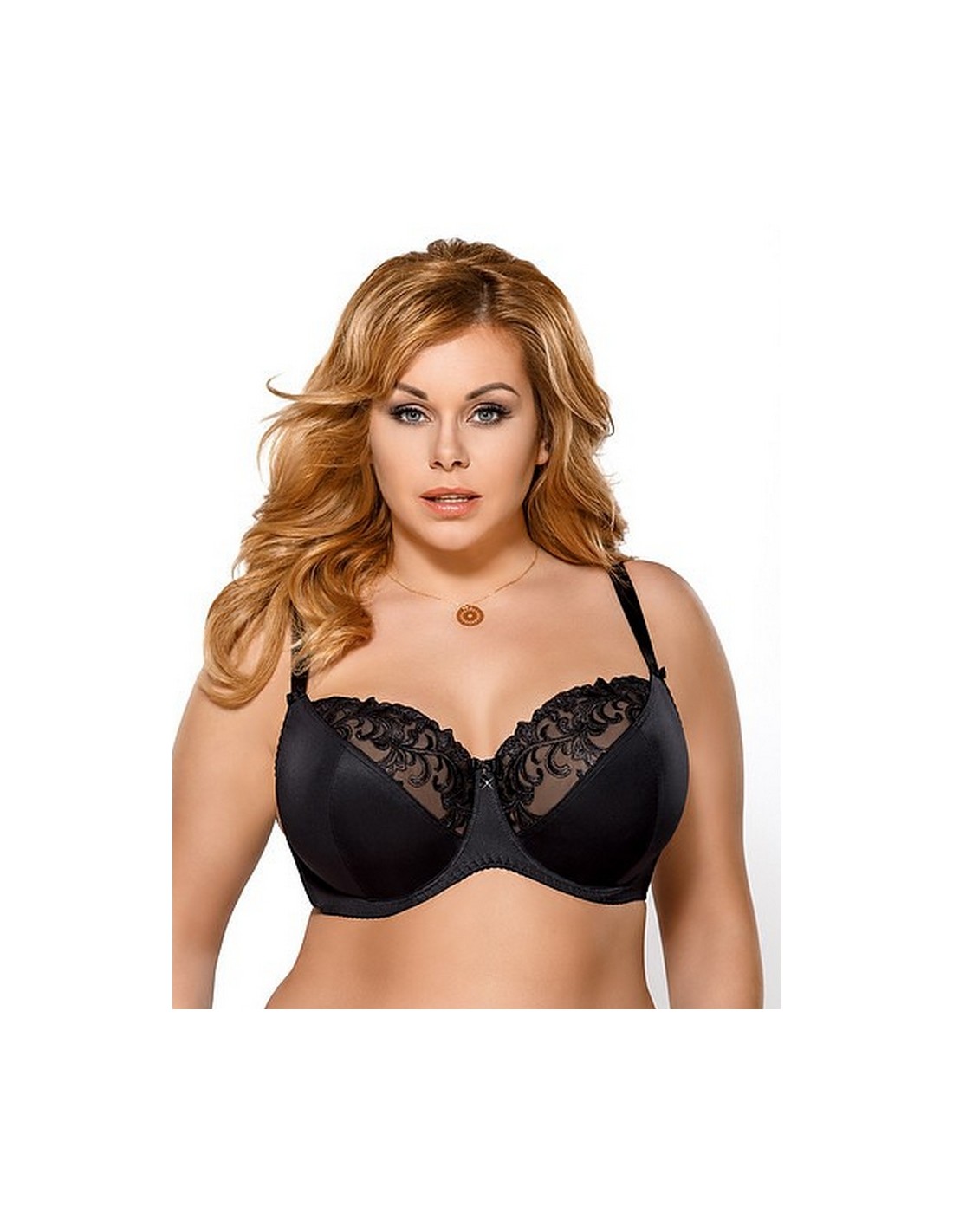 Biustonosz Victoria to klasyczny miękki stanik na fiszbinach. Wykonany z doborowych, gładkich surowców połączonych z eleganckim haftem. Świetnie skrojone miseczki dobrze zbierają biust i utrzymują we właściwym miejscu. Dolna część miseczek uszyta z mocnej, gładkiej, matowej tkaniny. Górna część wykonana z haftu dla wzmocnienia podszytego delikatną siateczką. Na środku ozdobna kokardka. Boczki wykonane z odpornej na rozciąganie dzianiny typu lycra. Ramiączka regulowane, nieodpinane.