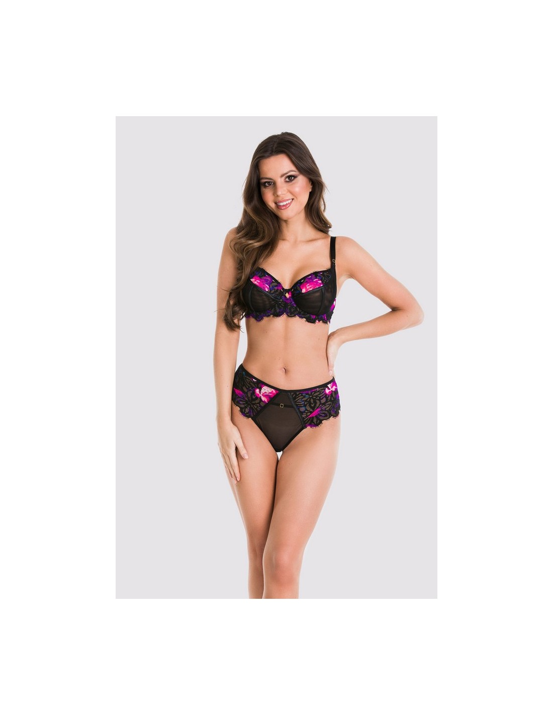 Miękka konstrukcja i koronka nadają mu wyjątkowego uroku. Mediolano Venezia miękki biustonosz koronkowy 19182 to idealny wybór dla kobiet z średnim, dużym i bardzo dużym biustem. Dzięki regulowanym ramiączkom oraz fiszbinom, biustonosz oferuje stabilne podtrzymanie, a jednocześnie jest lekki i komfortowy w noszeniu. Miski wykonane z czarnego tiulu, a górna część oraz plecy zdobione koronką fluo, co nadaje mu elegancki wygląd. Obwód stworzony z stabilnej siatki pokrytej koronką zapewnia maksymalne wsparcie. To doskonały biustonosz na co dzień oraz na specjalne okazje.
