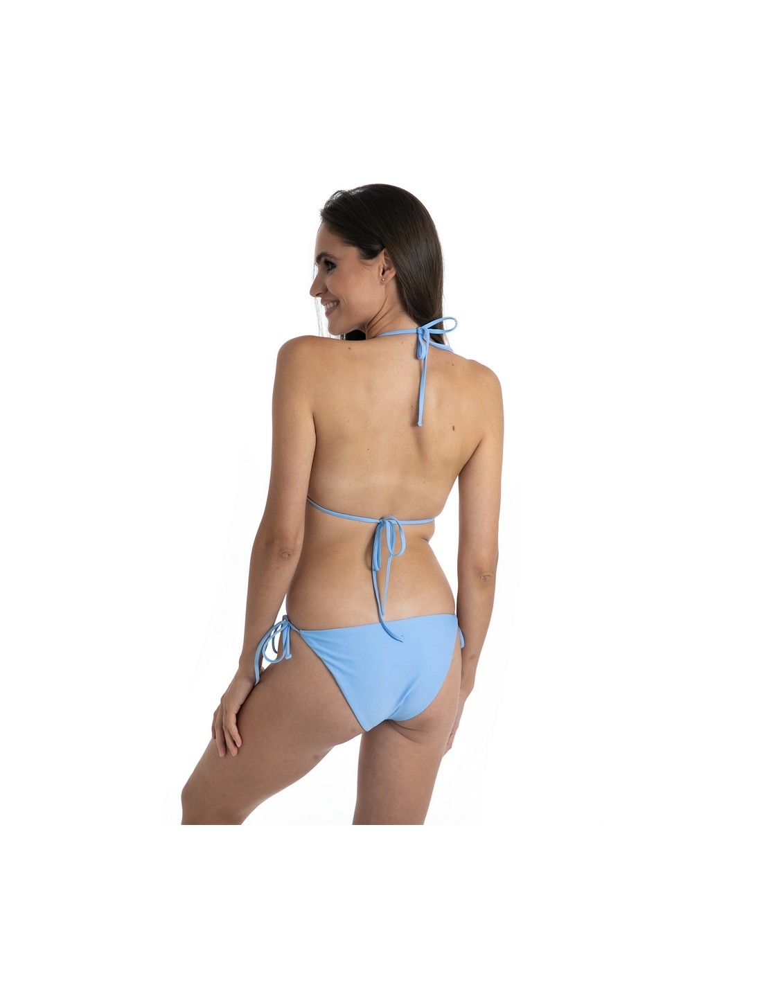 Biustonosz, wiązany również na szyi, jak i na plecach, daje możliwość idealnego dopasowania do sylwetki. Figi z niskim stanem, także wiązane po bokach, zostały uszyte z podwójnej warstwy materiału na podszewce, co sprawia, że są rewelacyjnie komfortowe podczas noszenia.