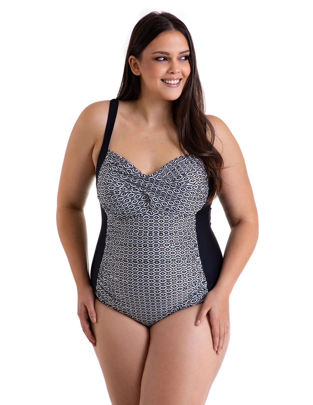 Jednoczęściowy wzorzysty kostium kąpielowy wyszczuplający z usztywnianymi miskami Primo