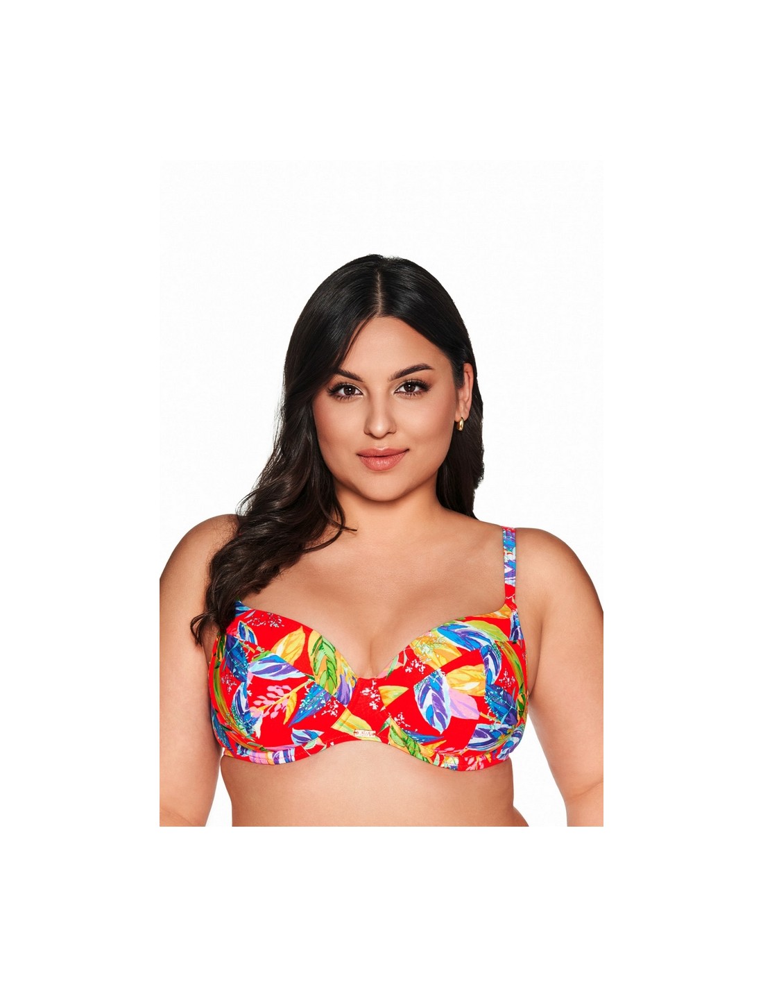 Biustonosz kąpielowy 226 FULL CUP wykonany jest z elastycznego materiału w energetycznych kolorach lata, łącząc neonową czerwień z różnorodnym motywem kwiatów. Usztywnione miseczki z fiszbinami perfekcyjnie podtrzymują i wyeksponują biust, zapewniając jednocześnie wygodę i styl.