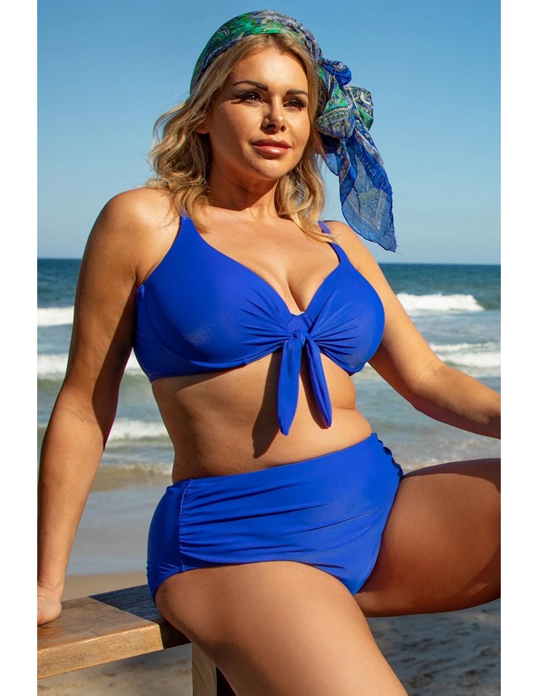 Dwuczęściowy kostium kąpielowy modelujący wyszczuplający plus size biustonosz usztywniany i wysokie majtki z marszczeniami Primo