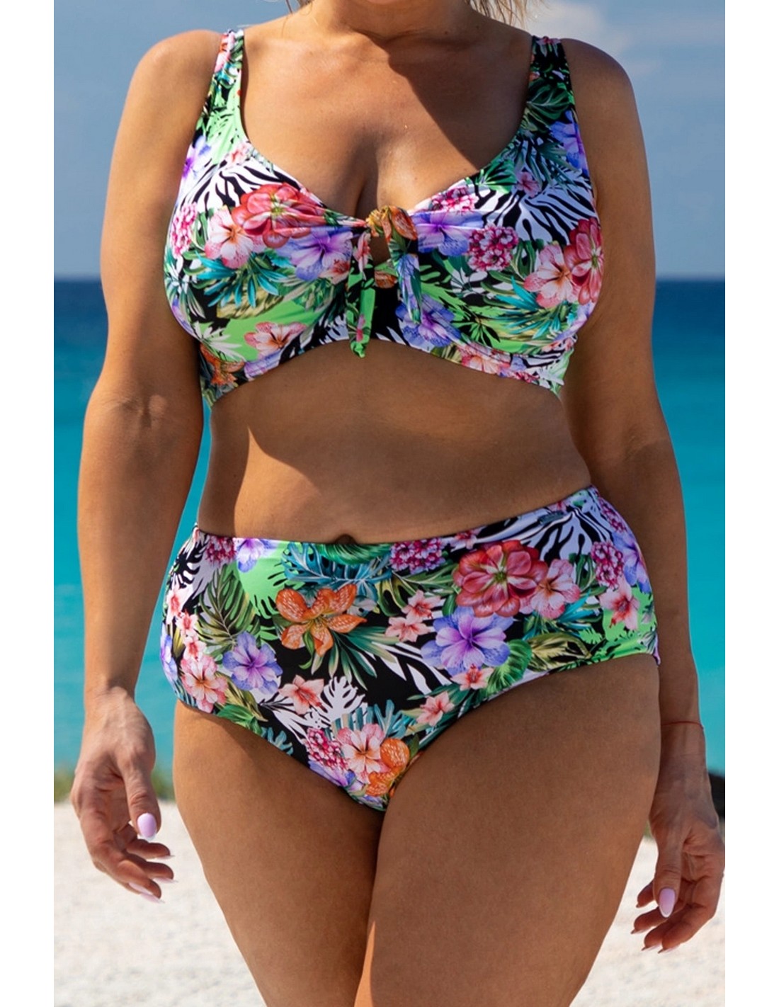 - Egzotyczna energia ? zielono-czarny druk w hawajskie kwiaty dla miłośniczek tropikalnego klimatu.