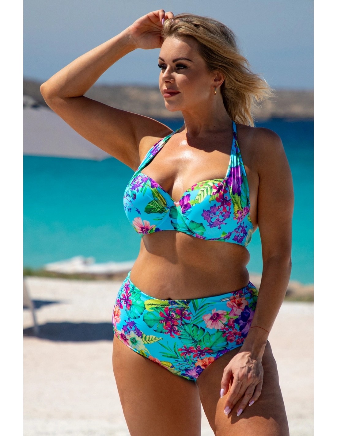 - Biustonosz z szerokim wiązaniem na szyi i usztywnianymi miskami ? zapinany na plecach, gwarantuje doskonałe podtrzymanie i modny look.