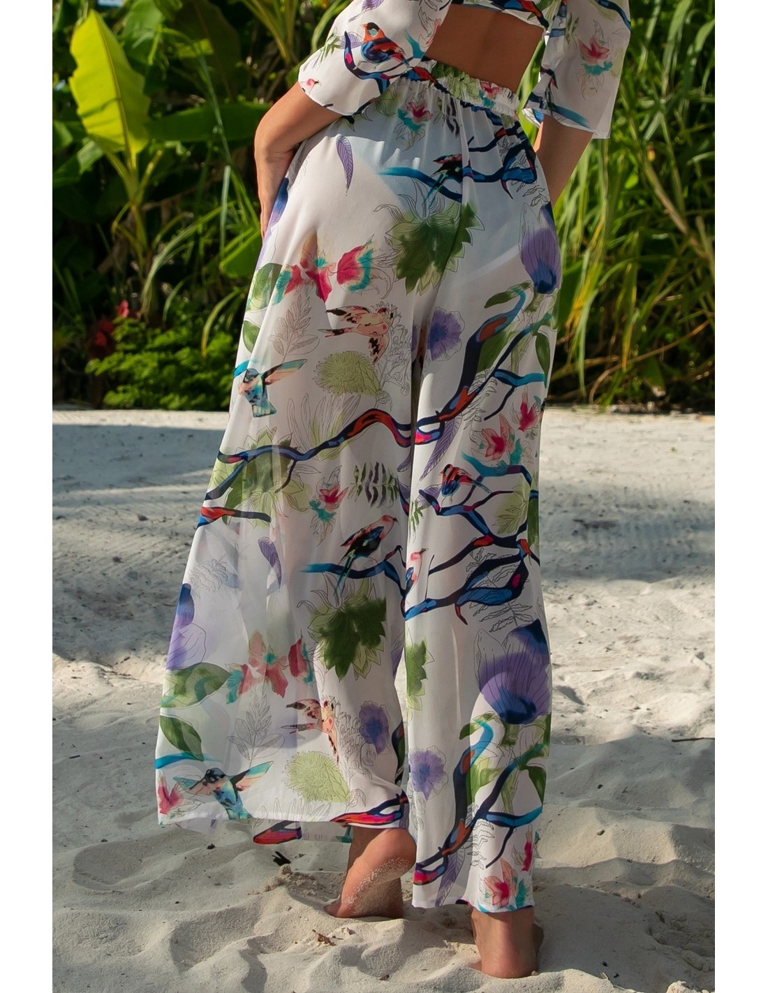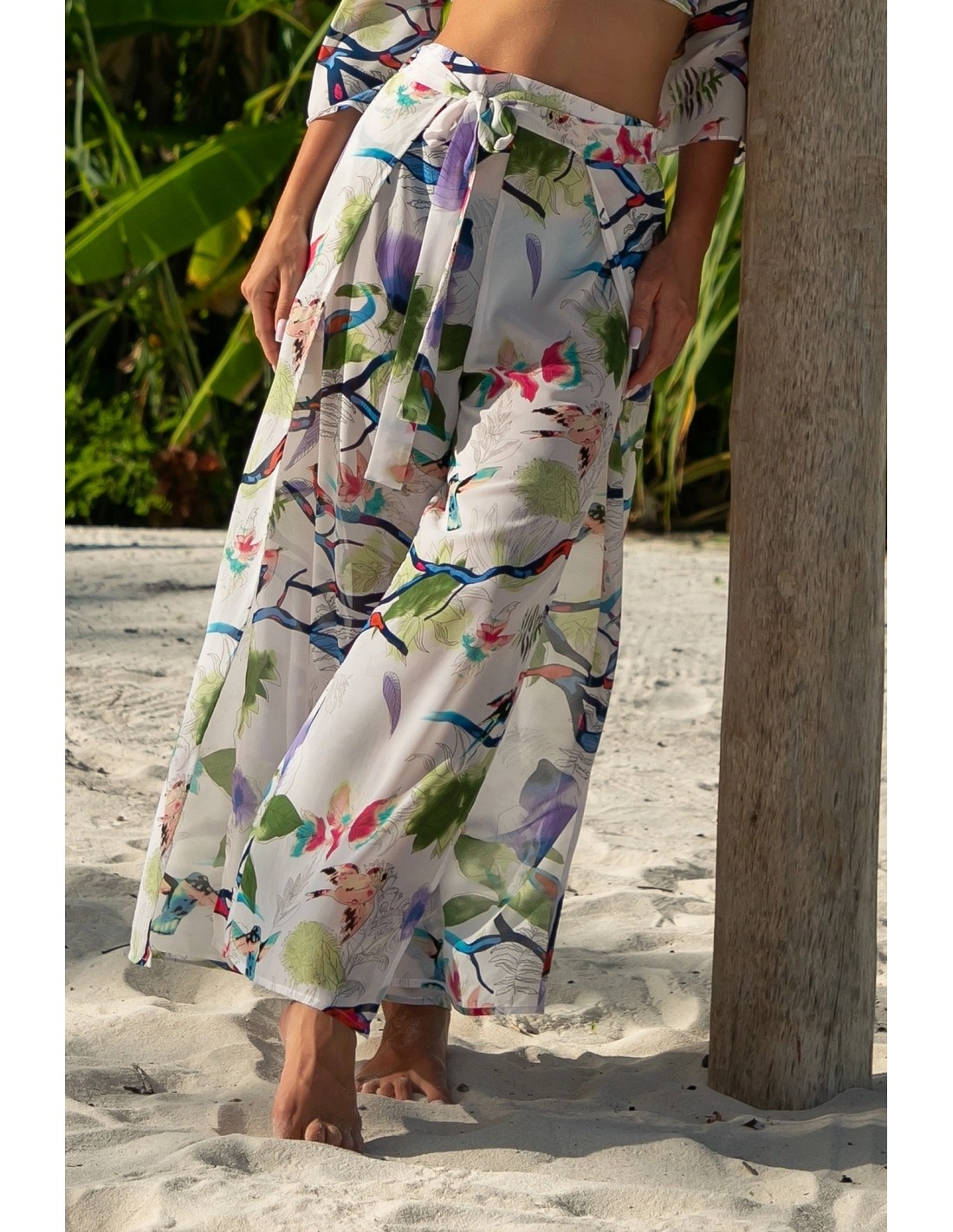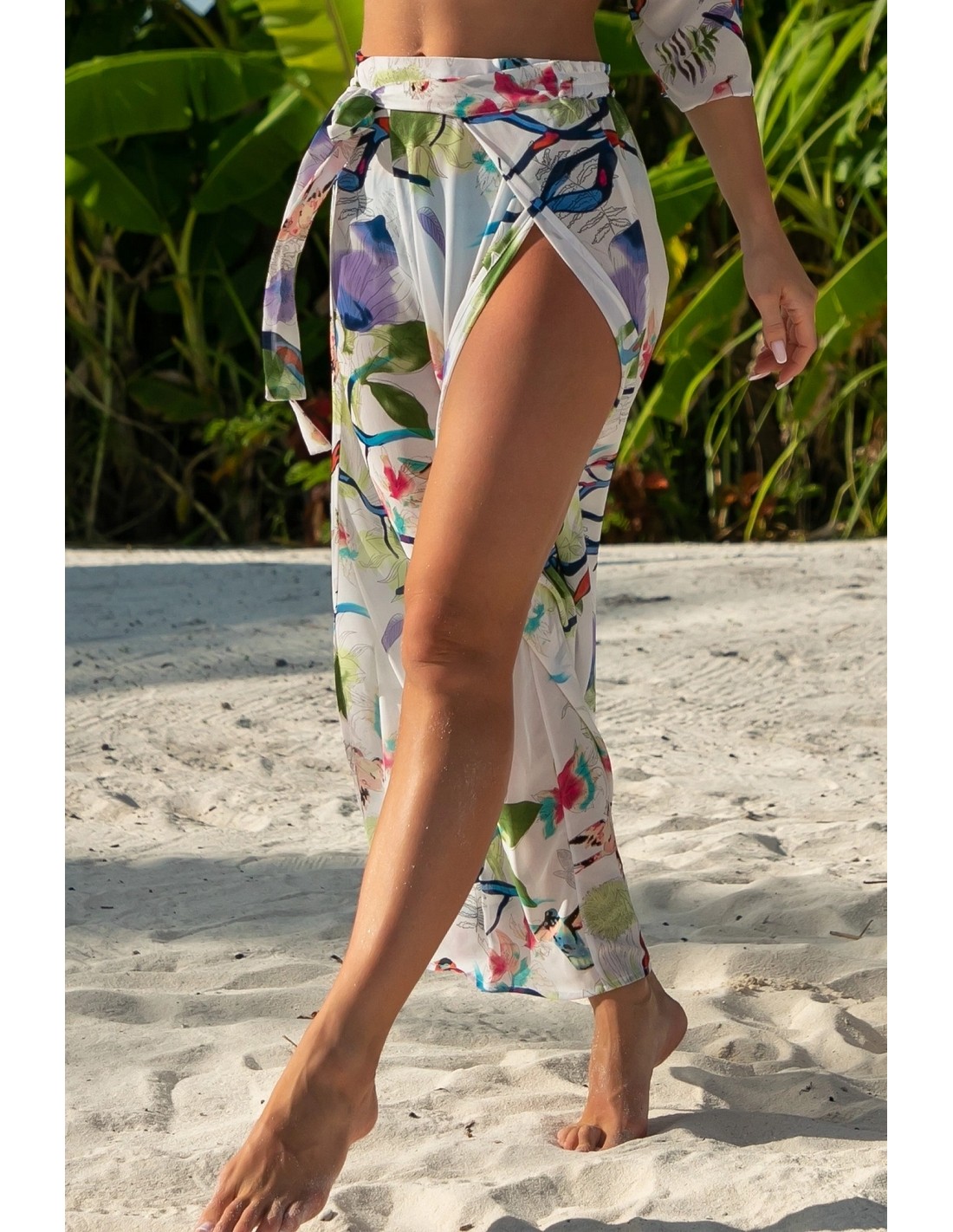 Spodnie plażowe są rewelacyjnie niezwykłe dzięki pięknym rozporkom z przodu, które nie tylko podkreślają i wydłużają nogi, ale również nadają całości lekkości i elegancji. Stworzone z wysokiej jakości włoskiego szyfonu, materiał pięknie powiewa w trakcie wiatru, dodając uroku każdemu ruchowi.
