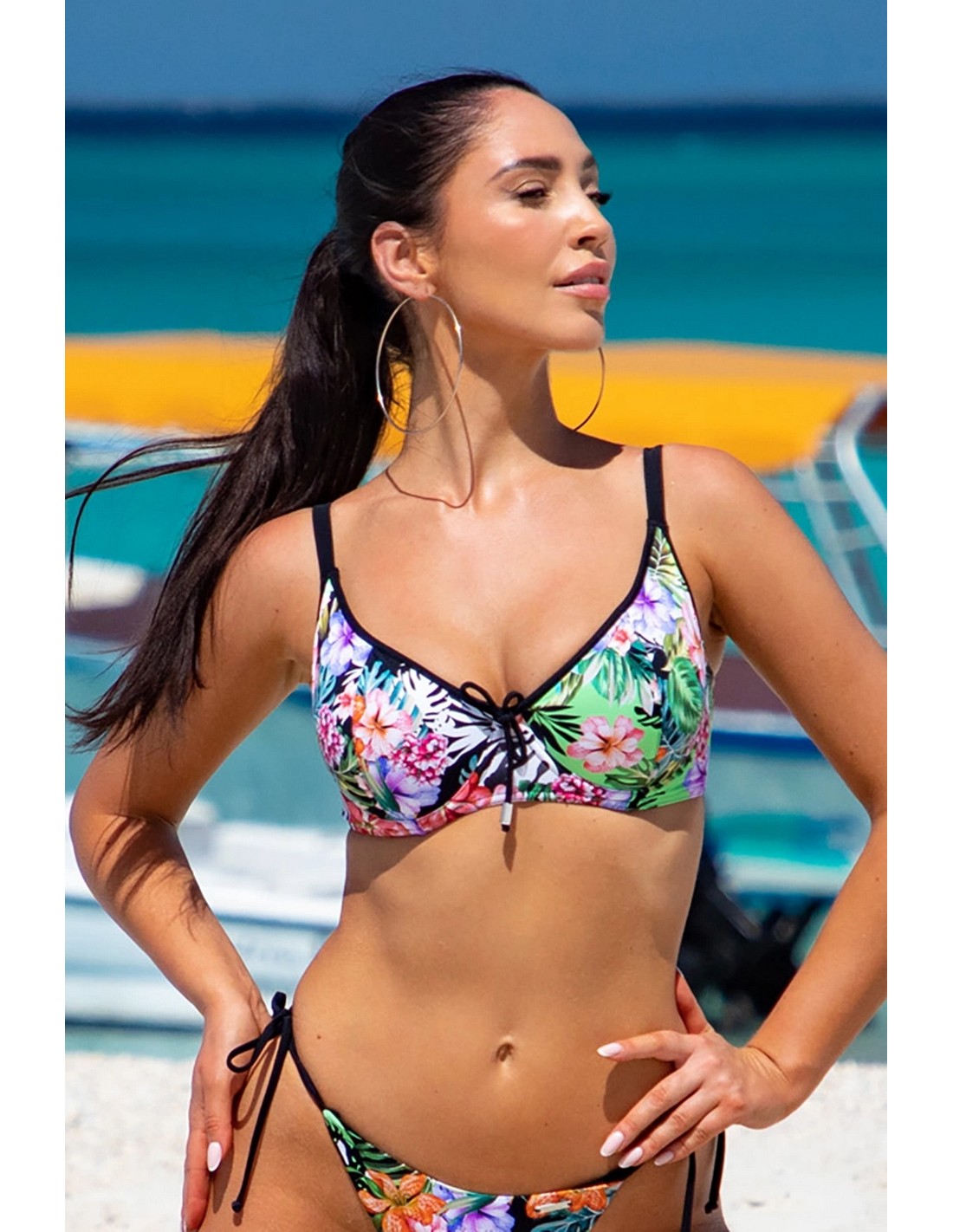 - Egzotyczna energia ? zielono-czarny druk w hawajskie kwiaty dla miłośniczek tropikalnego klimatu.