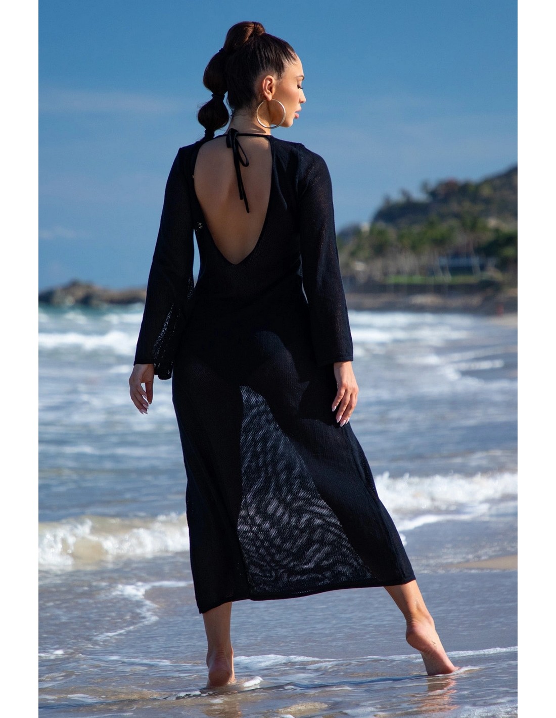 Długa sukienka ażurowa z dekoltem na plecach z bawełny x fobya czarna Primo