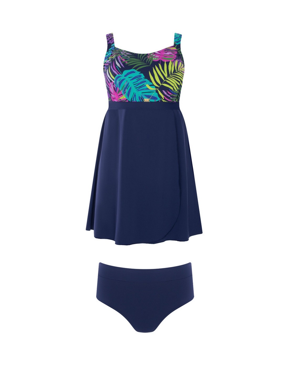 Model LIMASSOL 5 S687V3LI5 to rewelacyjnie kobiecy i komfortowy dwuczęściowy kostium kąpielowy z efektowną spódniczką, idealny dla kobiet, które cenią styl i wygodę. Stanik z fiszbiną i usztywnianymi miseczkami zapewnia optymalne podtrzymanie biustu, a szerokie, regulowane ramiączka gwarantują wygodę noszenia oraz indywidualne dobranie. Górna część przyciąga wzrok energetycznym, tropikalnym printem w liście, który kontrastuje z jednolitą granatową spódniczką. Spódniczka maskuje biodra i uda, nadając sylwetce lekkości i gracji. W zestawie dołączone są klasyczne figi z pełnymi bokami, które zapewniają pełne krycie i komfort. Materiał odporny na chlor sprawia, że kostium sprawdzi się zarówno na plaży, jak i na basenie, zachowując swoje kolory i kształt przez długi czas.