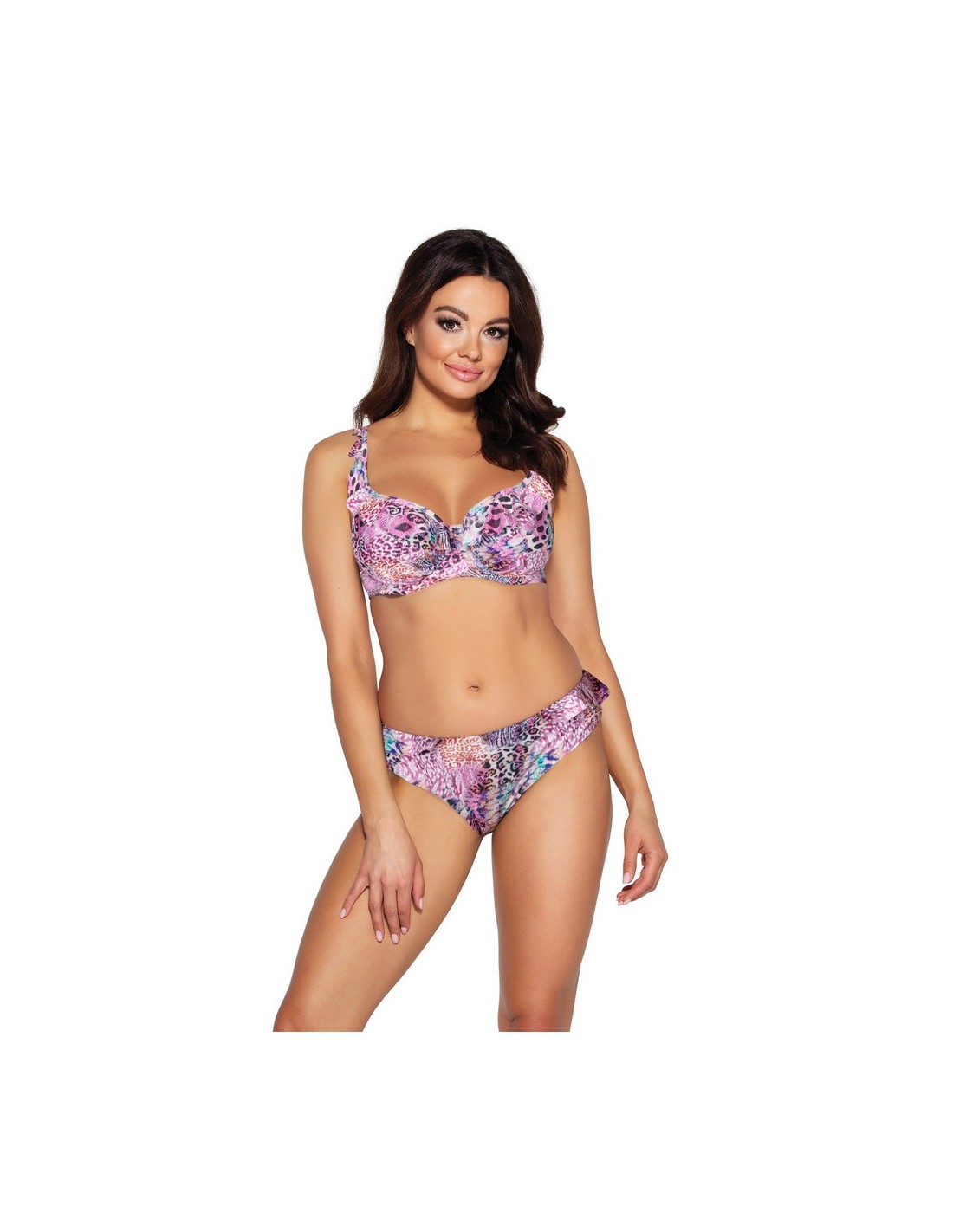 SK 177 PINK to rewelacyjnie kobiecy i szykowny biustonosz kąpielowy. Materiał wysokiej klasy, z którego wykonany jest strój, znakomicie dopasowuje się do ciała, odporny jest na rozciąganie oraz działanie promieni słonecznych. Miękki biustonosz Znakomicie zbiera i unosi biust. Biustonosz zapinany jest antyalergicznym zapięciem. Ramiączka - nieodpinane, regulowane antyalergicznym, metalowym regulatorem.