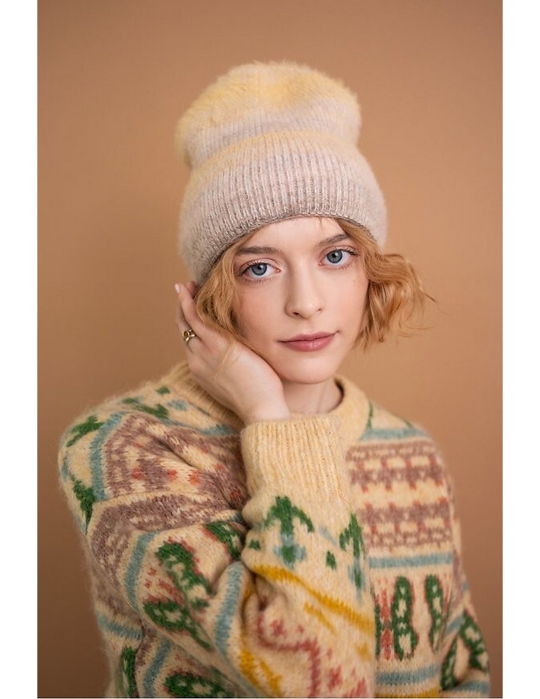 Zimowa czapka o klasycznym kroju i melanżowej kolorystyce