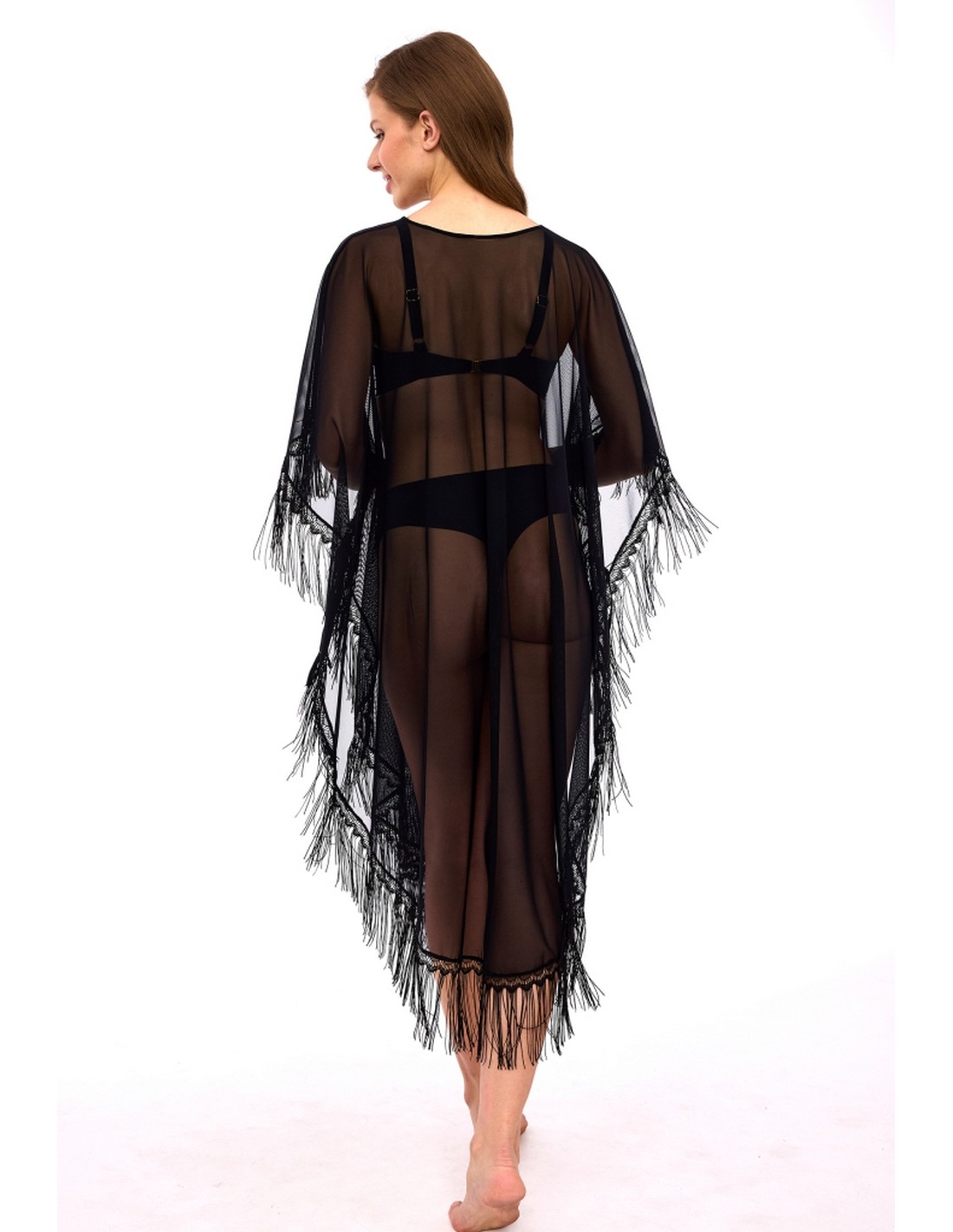 Pareo Pareo Carneya - Piękne pareo w formie dłuższej tuniki, wykonane z czarnego tiului z frędzelkami. Propozycja idealna również na plażę oraz jako dodatek do letniej stylizacji.