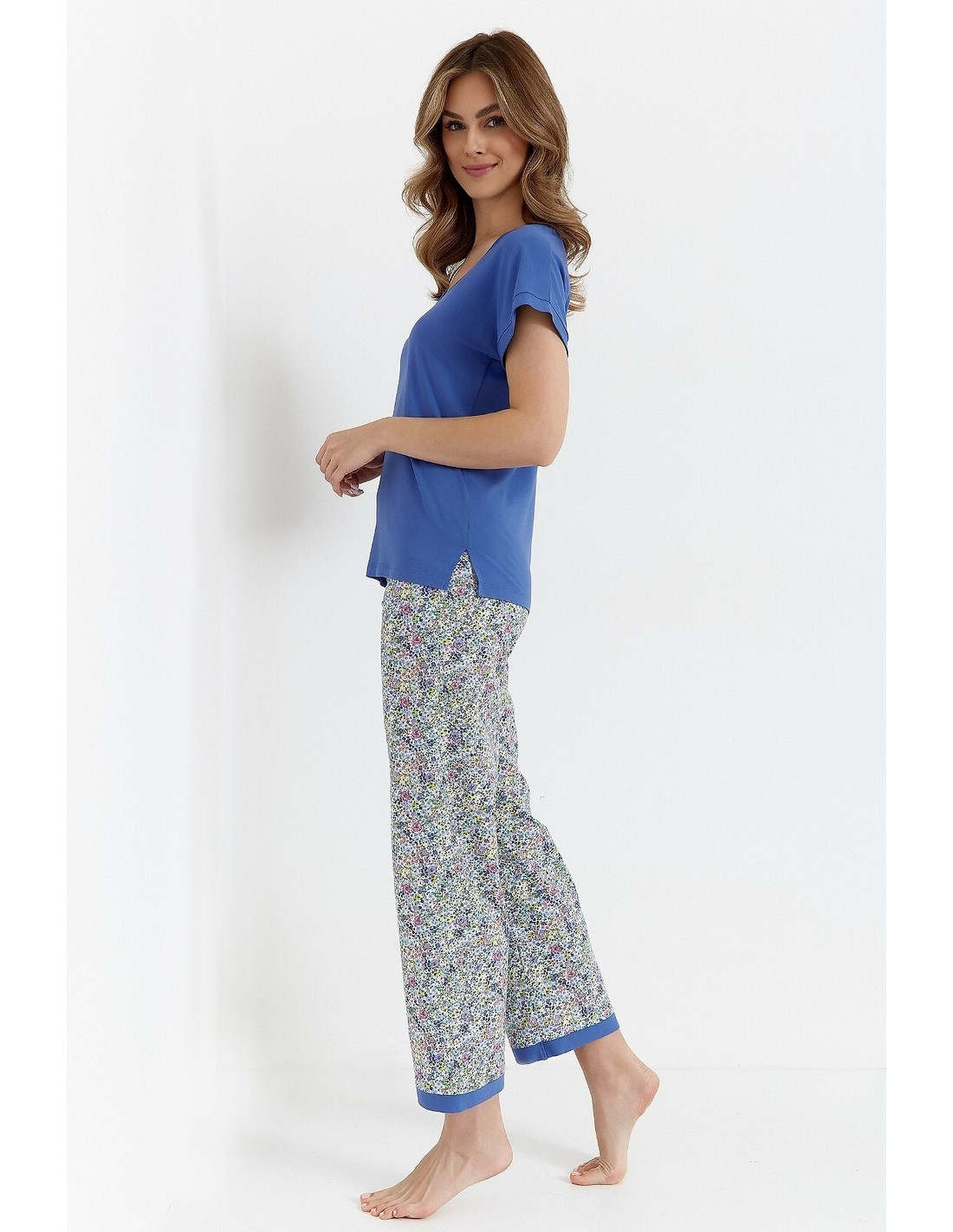 - bawełniane spodnie z nogawką 7/8, w kwiatowy print