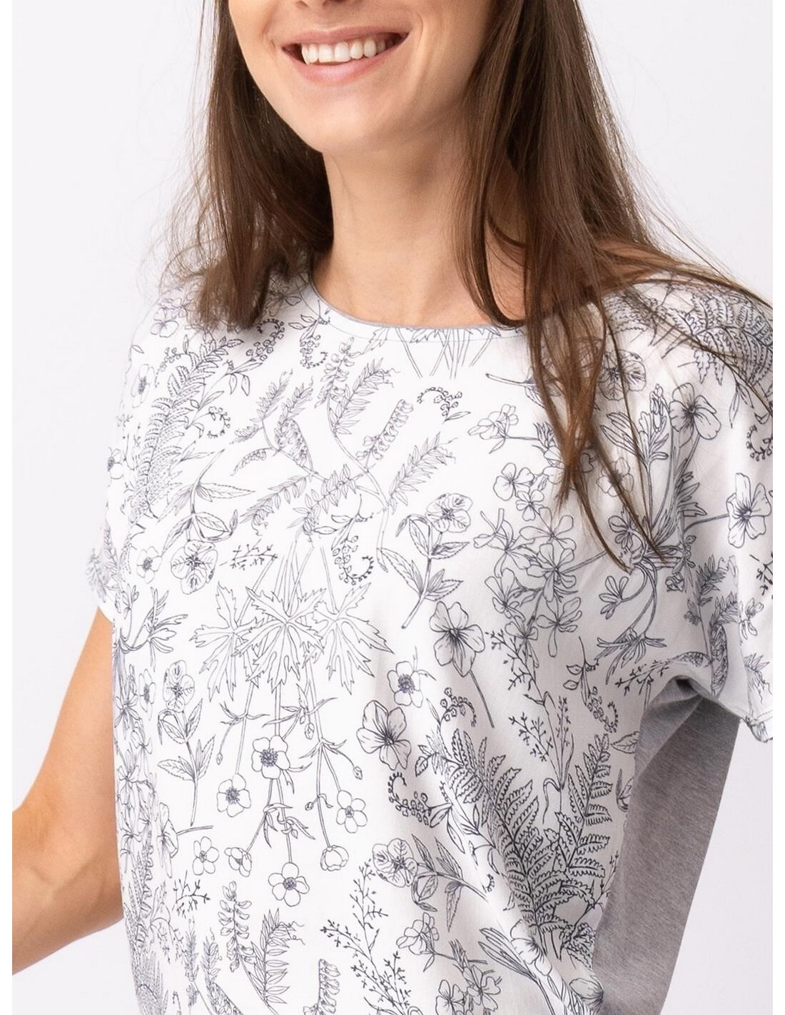- przód koszulki z cienkiej dzianiny wiskozowej w kwiaty