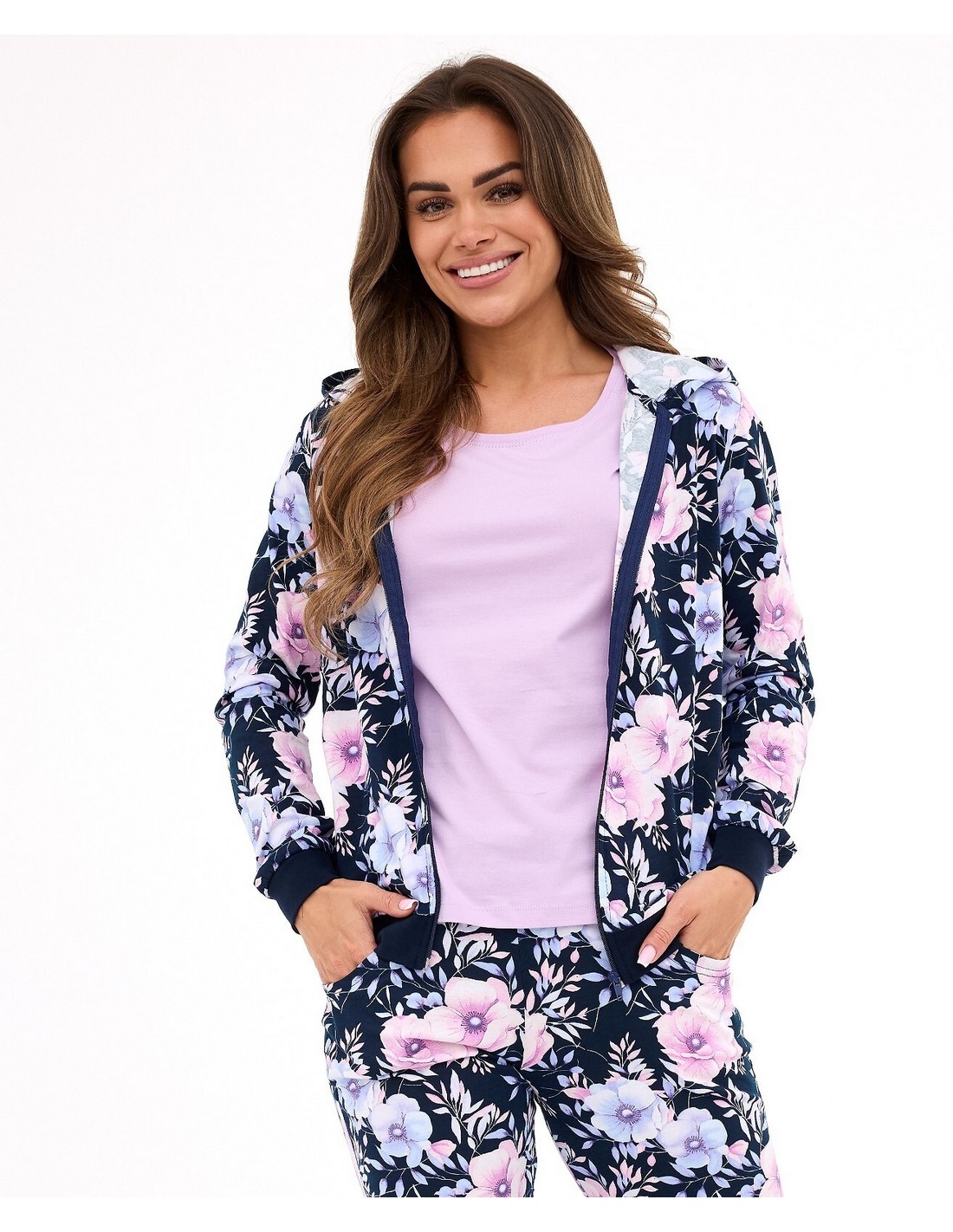 Bluza w kwiatowy wzór, z kapturem, zapinana na zamek - praktyczna i stylowa, z kieszeniami oraz ściągaczami na dole i rękawach