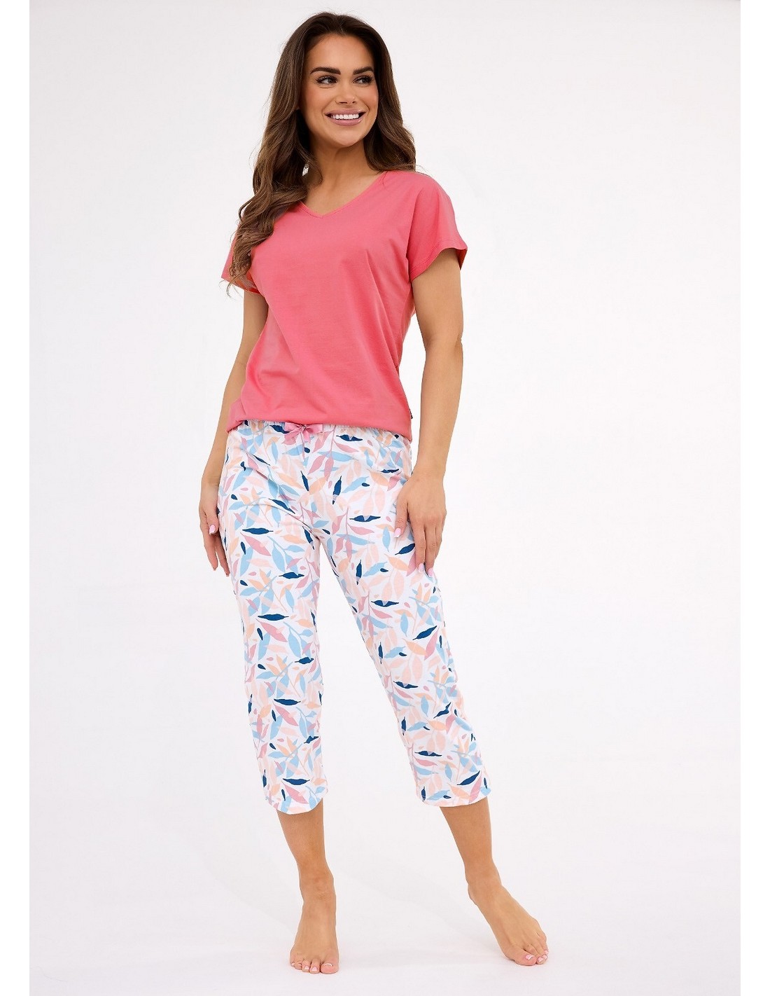 - bawełniane spodnie z nogawką 3/4, print w kolorowe listki
