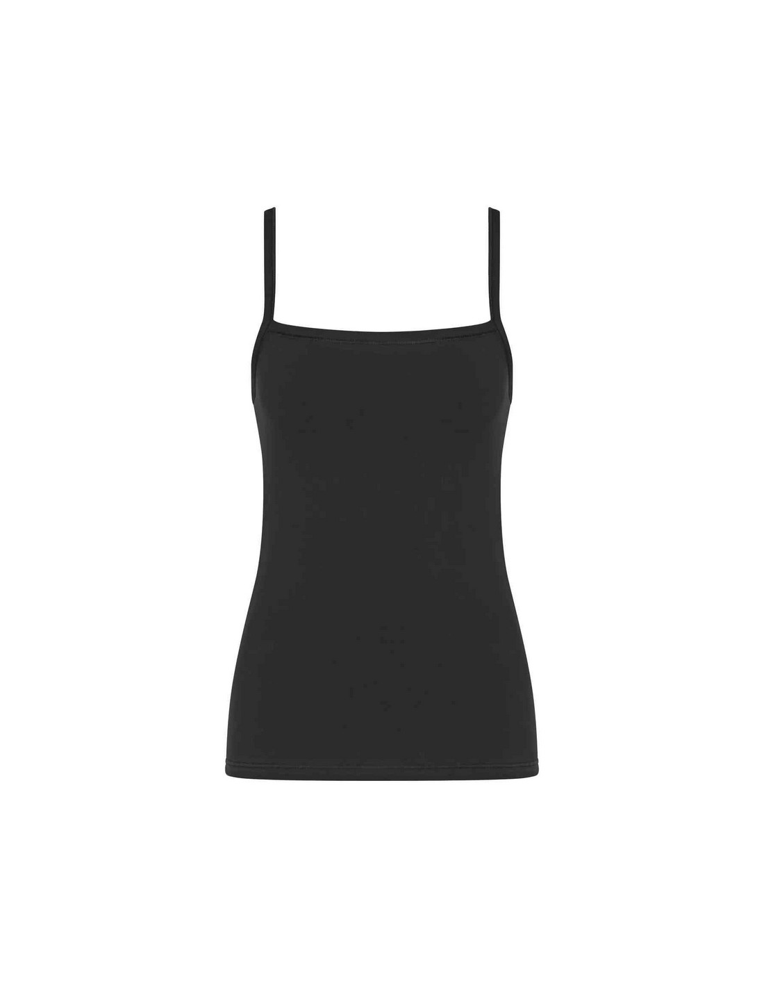 ?Styling details and a neutral palette reinforce the classic cool credentials. ? Spaghetti top with a modern square neckline