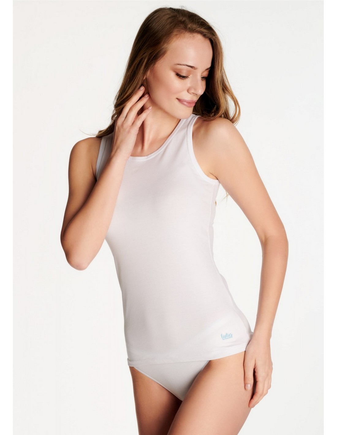 Koszulka damska, na ramiączka. Wykonana z miękkiej bawełny z dodatkiem elastanu.