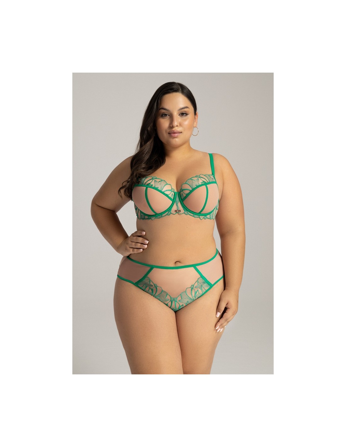 AV 2160 Moss Semi Soft - ożyw swoją stylizację zmysłowym biustonoszem w wiosennym stylu! Półusztywniane miseczki wyścielone miękką pianką gwarantują optymalne kształtowanie i wygodne podtrzymanie biustu. Zewnętrzną część pokrywa cielisty tiul z efektownymi lamówkami oraz roślinnym haftem w energetycznym odcieniu zieleni, który nadaje modelowi świeżości. Haftowany bawet dodaje lekkości, a ramiączka w nasyconej zieleni podkreślają wyjątkowy charakter stanika. Bestsellerowa konstrukcja wyśmienicie zbiera i unosi piersi, a figlarne figi tworzą z nim idealny zestaw. Zakochaj się w orzeźwiającym modelu Moss i poczuj powiew wiosny!