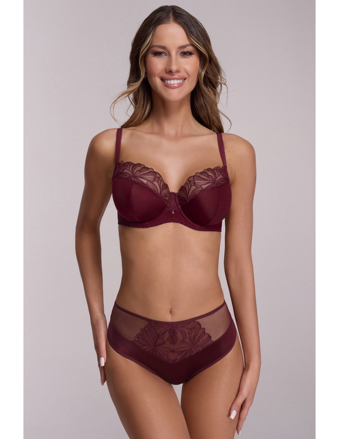 Biustonosz AV 2196 Majesty Wine Semi Soft to wyjątkowa propozycja dla kobiet ceniących elegancję i komfort w jednym. Nasycony burgund dodaje wyrafinowanego wdzięku, a miseczki typu semi soft perfekcyjnie obejmują biust, delikatnie unosząc go dzięki miękkiej piance w dolnej części.