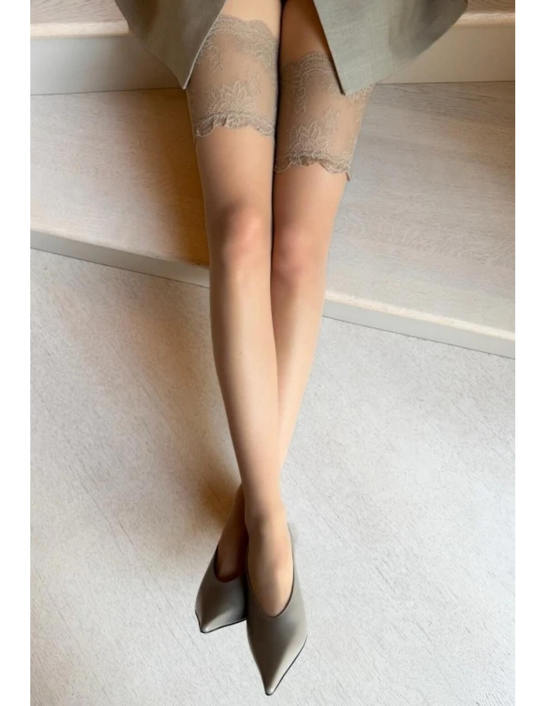 - góra zakończona szeroką koronką (10 cm) o kwiatowym motywie