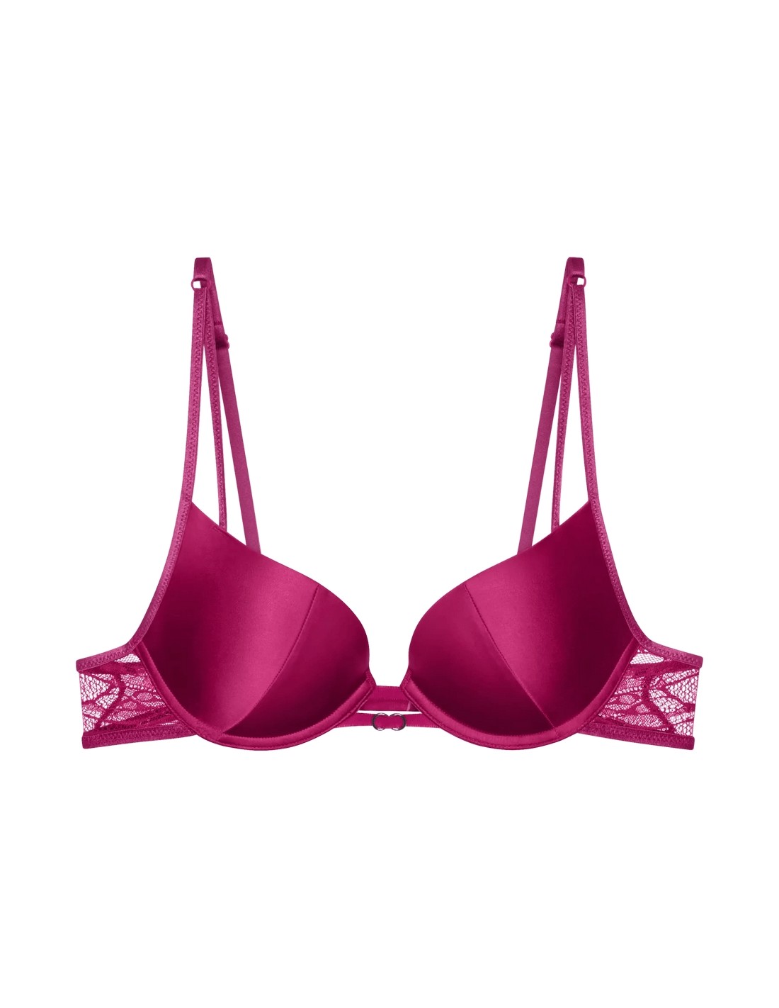 Seductive looks styled with alluring Italian lace, coupled with mesh, enhance the daring cuts. Crafted from partially recycled fabric (GRS certified). ? Push-up bra with a seductive bust shape and double rings on the front