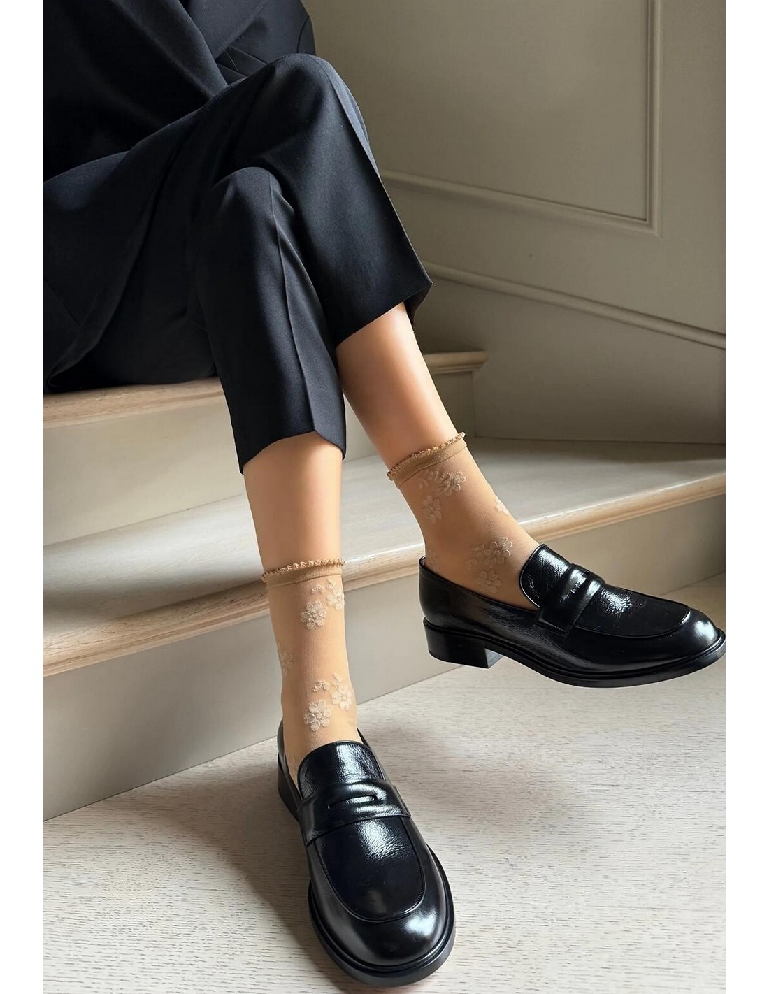 Cienkie, wzorzyste skarpety damskie
