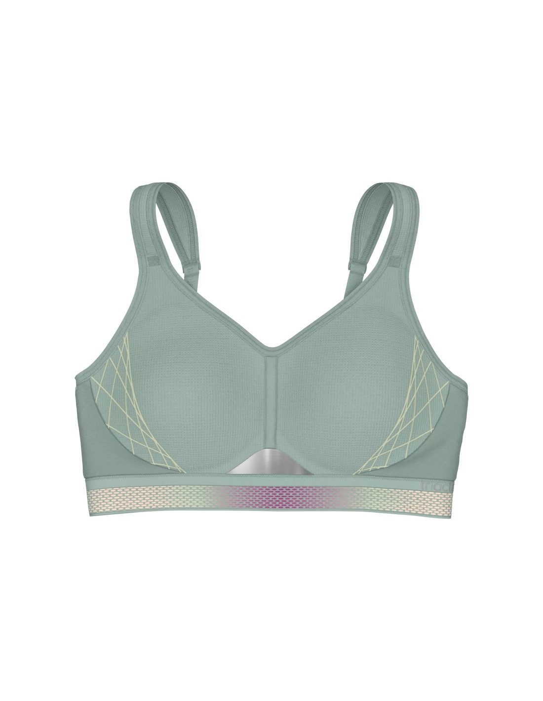 Biustonosz sportowy Triumph Triaction Cardio Flow P EX abstinthe zapewnia wsparcie podczas intensywnych treningów, oferując komfort i oddychalność. Jego lekka miseczka typu spacer zapewnia cyrkulację powietrza.