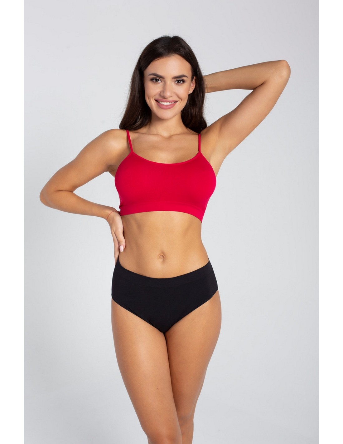 Top wykonany z mikrofibry, bez bocznych szwów. Skład: 93% poliamid, 7% elastan.