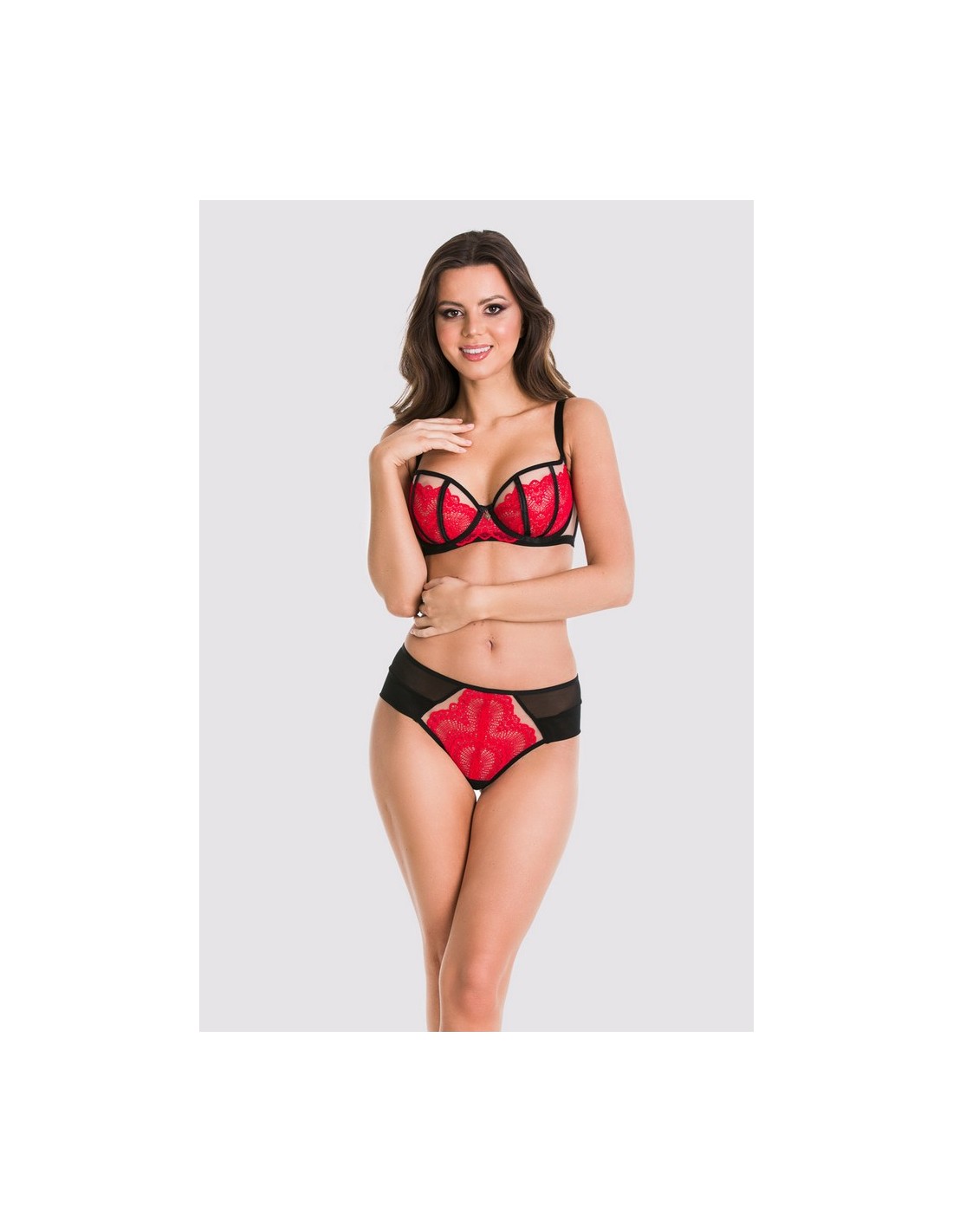 Figi brazyliany Amore 19169 od Mediolano to elegancka bielizna damska, idealna dla kobiet pragnących podkreślić kształty. Wykonane z czerwonej koronki, zapewniają wygodę i zmysłowy wygląd.