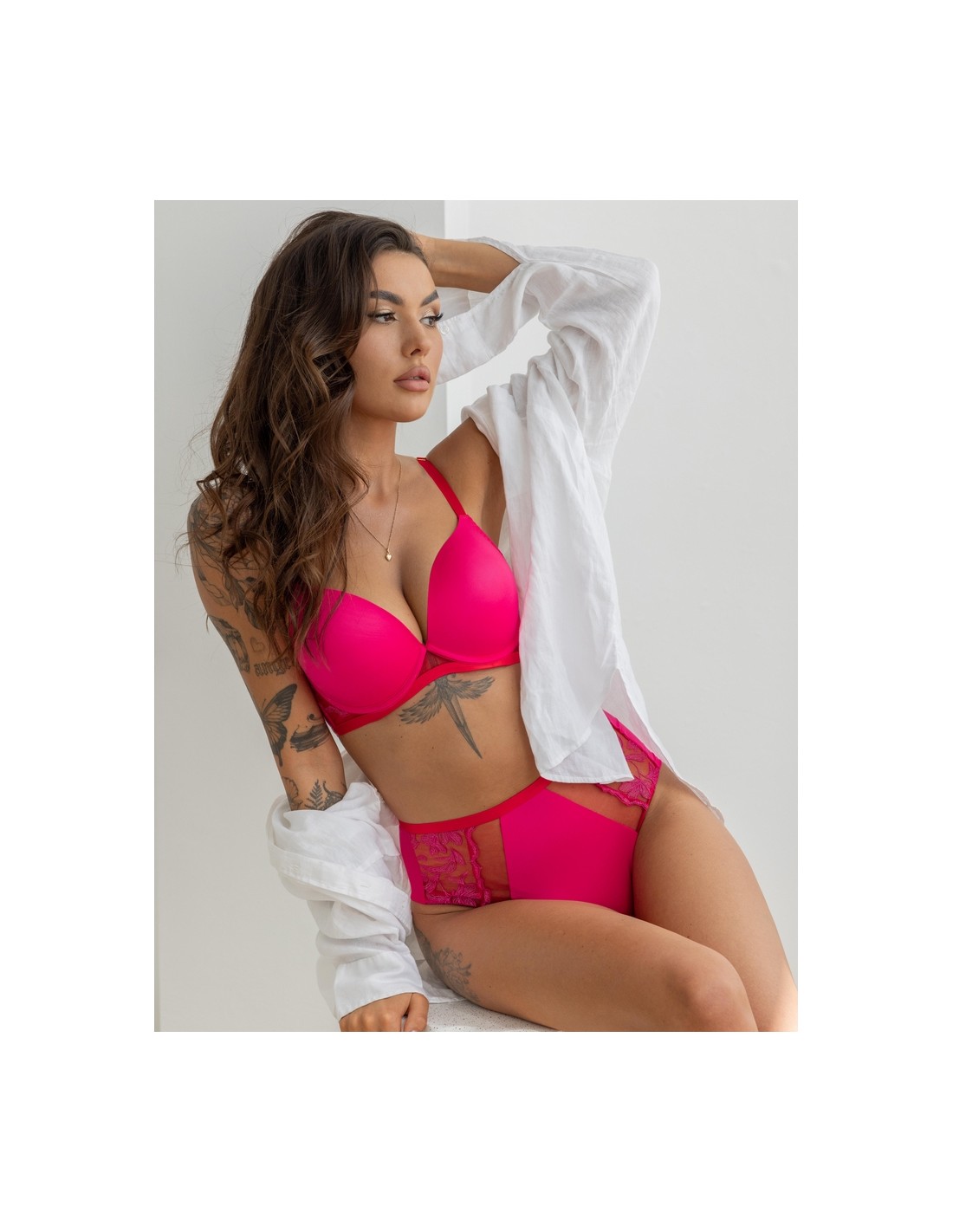 Brazyliany z wysokim stanem wykonane z delikatnej koronki w zmysłowej kolorystyce różowo-czerwonej, gwarantują nie tylko piękny wygląd, ale i komfort noszenia na co dzień. Wysoki stan modeluje talię, podkreślając kobiece kształty, a specjalna konstrukcja zapewnia idealne dopasowanie.
