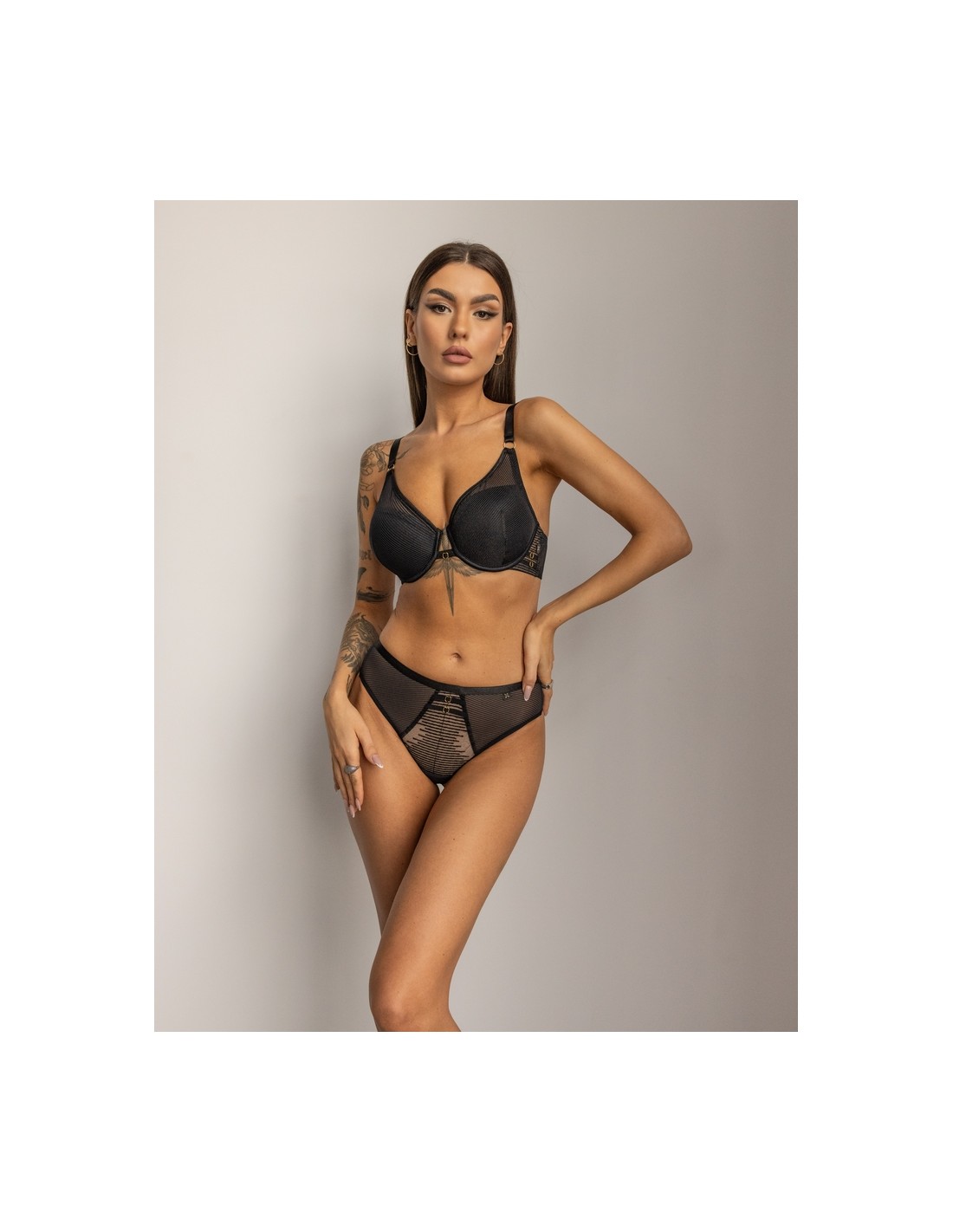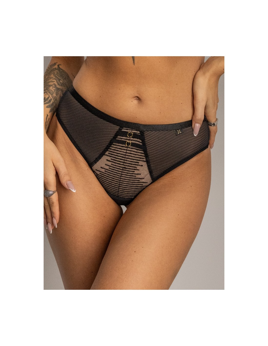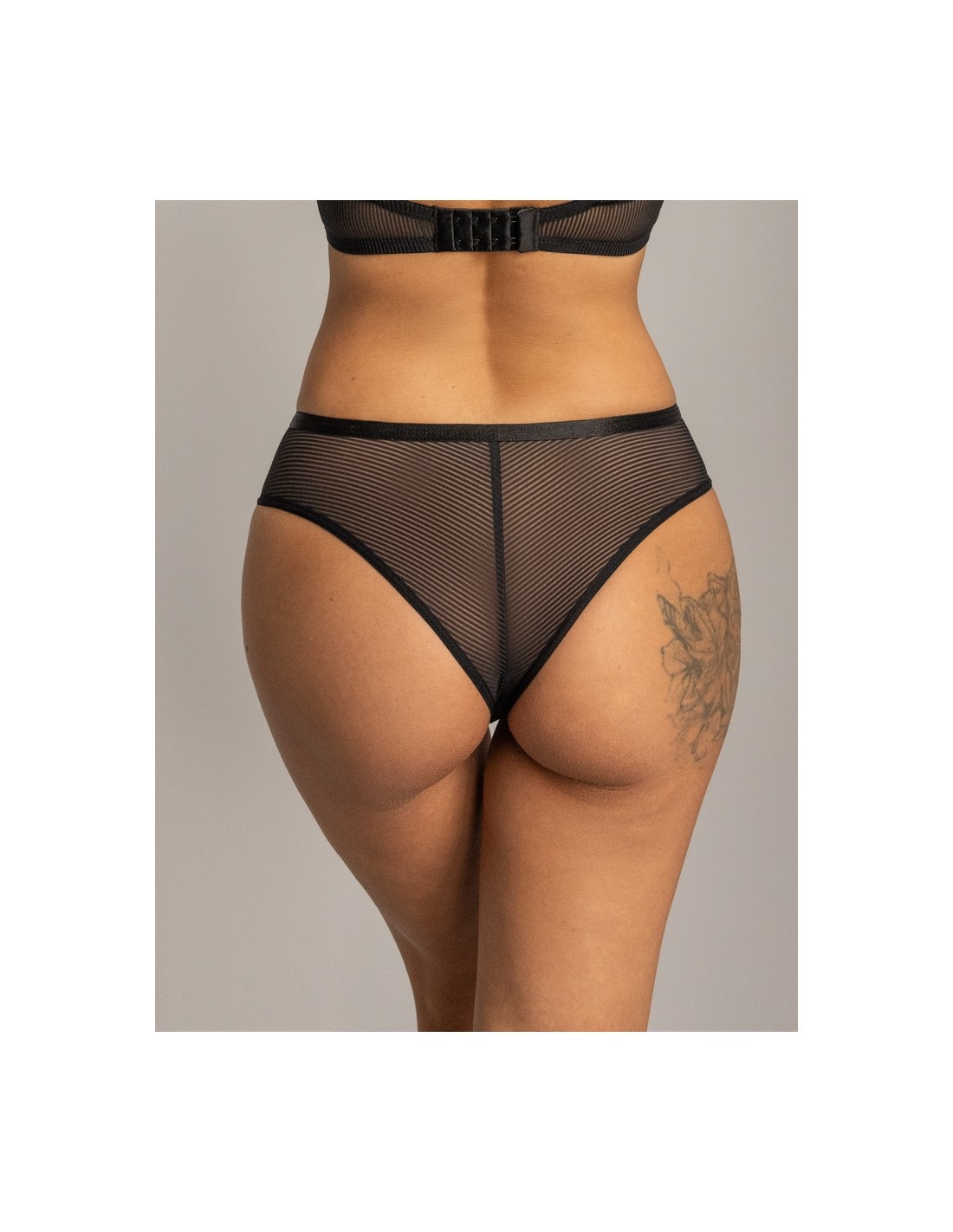 Majtki brazyliany Krisline Choice to elegancka bielizna damska z czarnej koronki. Dedykowane kobietom, które pragną podkreślać swoje atuty. Odsłaniają połowę pośladka, zapewniając zmysłowy wygląd.
