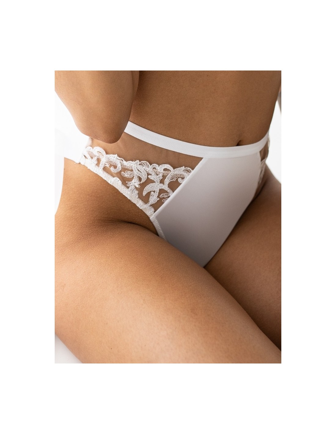 Majtki brazyliany damskie Krisline Yes, białe z koronką