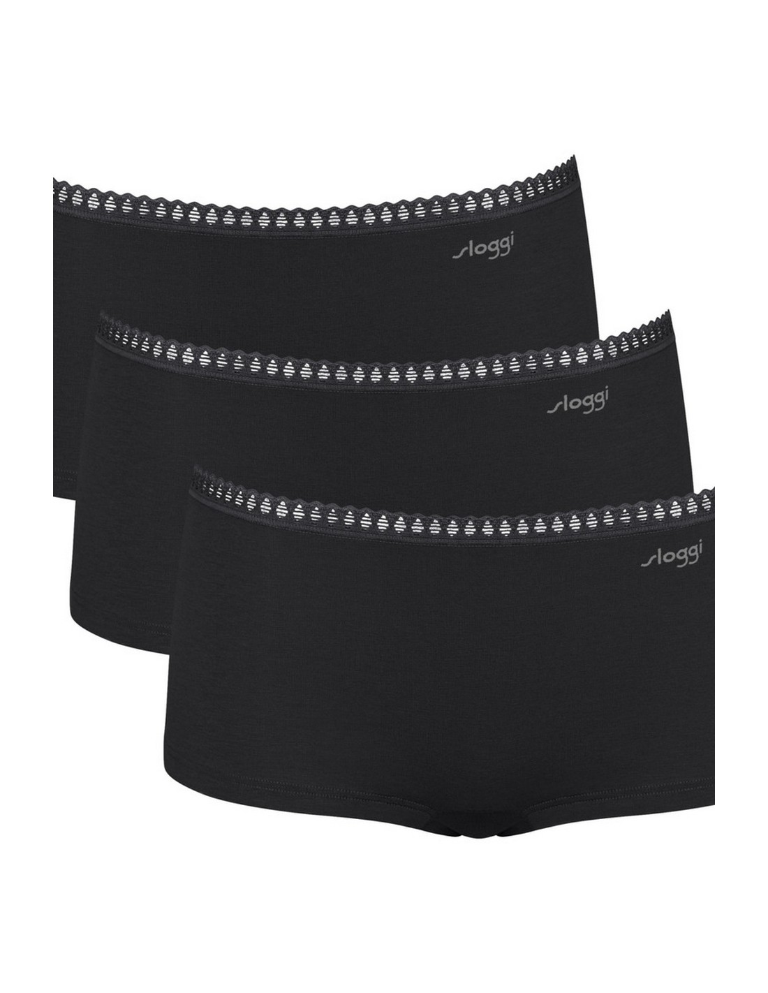 W pasie zastosowano lekką, ażurową koronkę, która dodaje bieliźnie kobiecego charakteru, jednocześnie pozostając dyskretna i miękka dla skóry. Dzięki elastycznej dzianinie majtki są bezuciskowe i nie odznaczają się pod ubraniem -- perfekcyjnie sprawdzą się zarówno pod dopasowane stylizacje, jak i na co dzień. Klasyczna czerń i minimalistyczne logo Sloggi na biodrze podkreślają ponadczasowy styl.