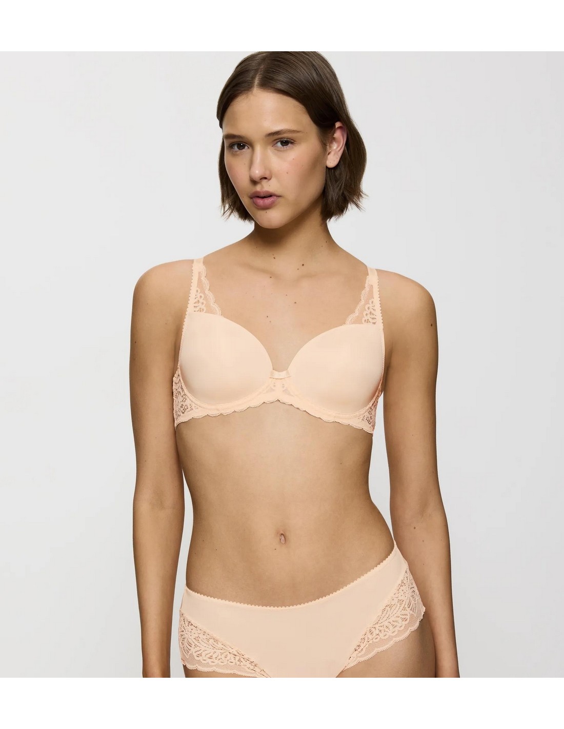 ? Cups made of smooth fabric with lace details