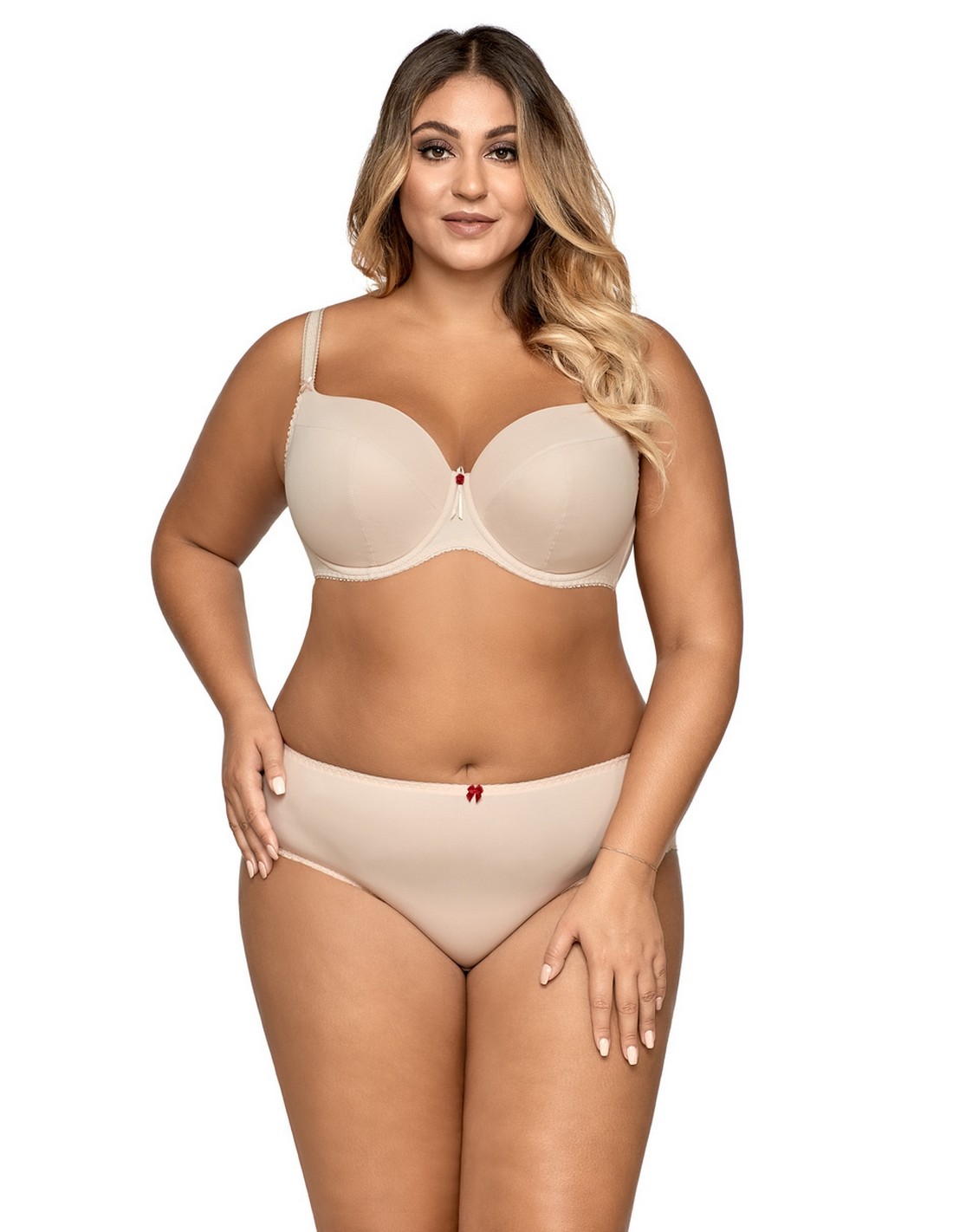 - między miseczkami subtelna różyczka oraz satynowa tasiemka