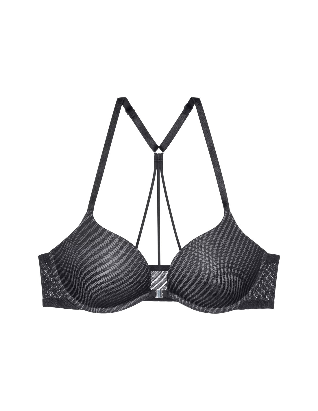 Wygodny i funkcjonaly stanik typu push-up. Jego fason z prześwitującej, pełnej koronki graficznej dodaje subtelnej elegancji. Zapięcie z przodu, gładki tył bez haftki to komfortowe rozwiązania dla pełnej funkcjonalności. Podszewka Powernet została dołożona, aby zapewnić większe podtrzymanie. Ramiączka regulowane. Skład: 48% Poliester, 40% Poliamid, 12% Elastan.